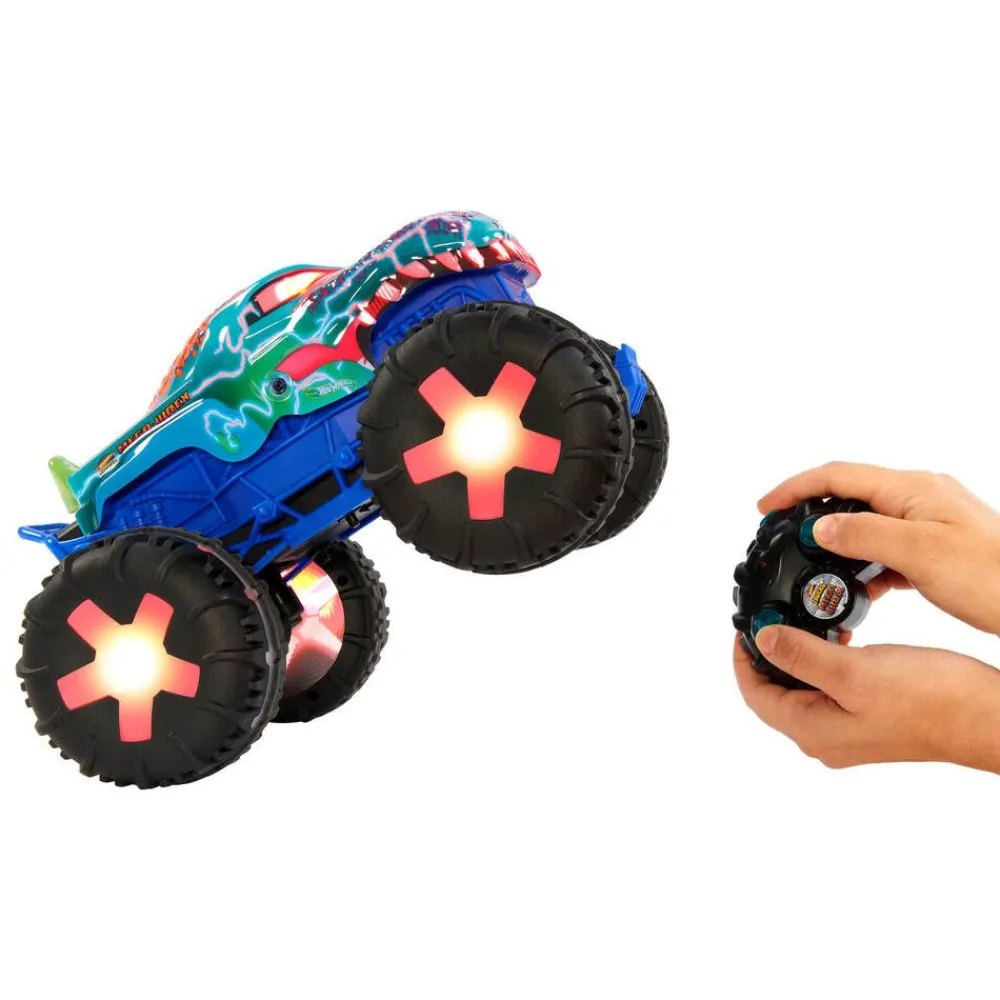 Interaktiivinen RC Mega Wrex -monsteriauto vuorovaikuttaa valotehosteilla! Monsteriautossa on lukuisia antureita ja valo…