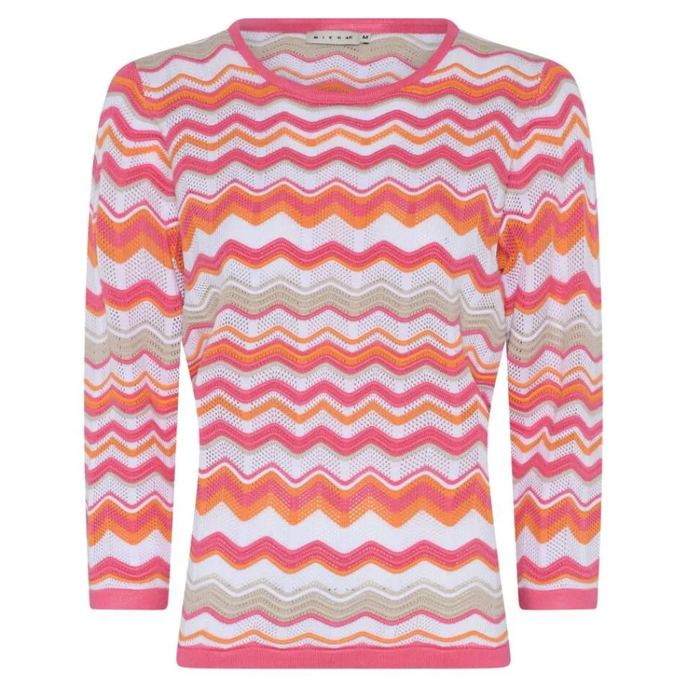 Värikäs neule vajaamittaisilla hihoilla ja siksak-raitakuosilla.Lisää tietojaKeskitakapituus: 62 cmHoito-ohje:Vesipe…