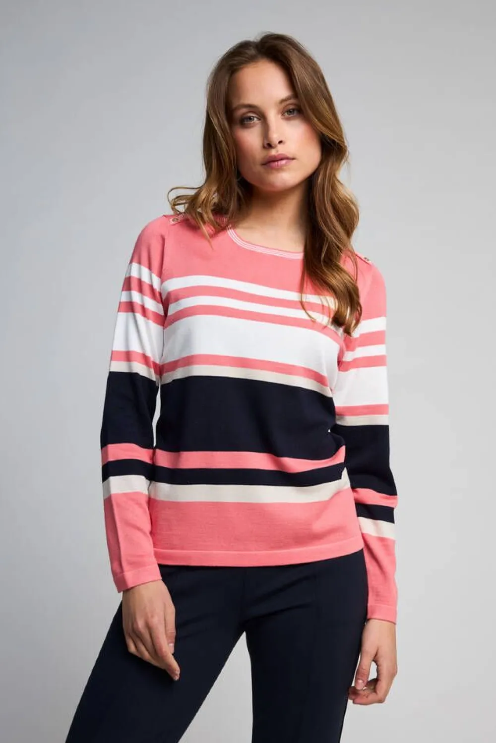 Ajattoman tyylikäs raitaneule hyvin perinteisellä mallilla, jossa on pienet koristenapit olalla.Lisää tietojaKeskita…