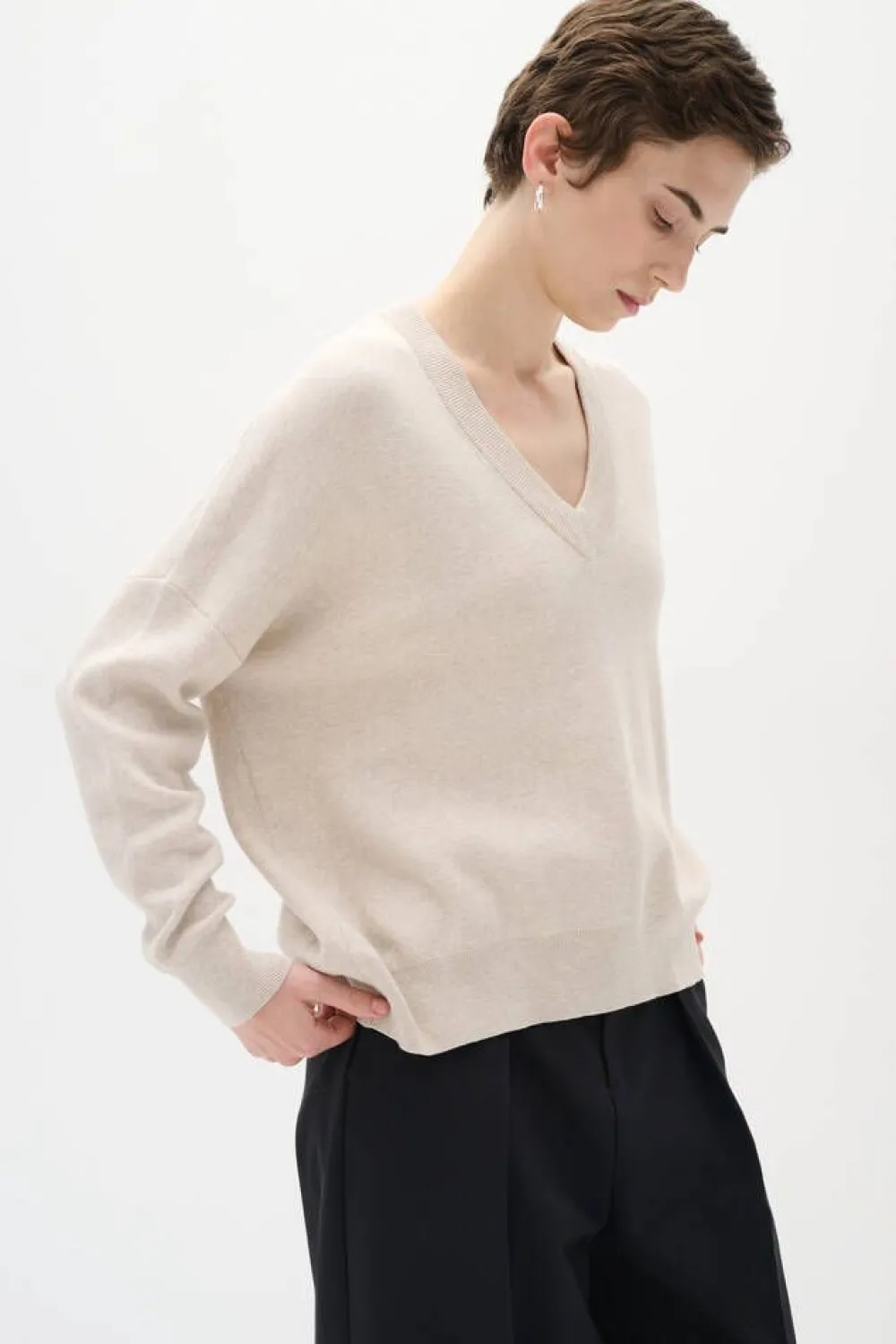 Klassisen tyylikäs väljä neule pudotetuilla olkasaumoilla. Elegantti V-pääntie.Lisää tietojaMateriaali:100% puuvi…