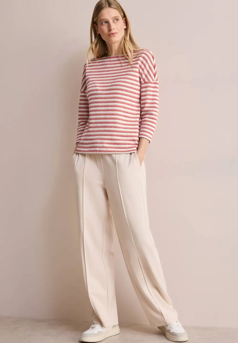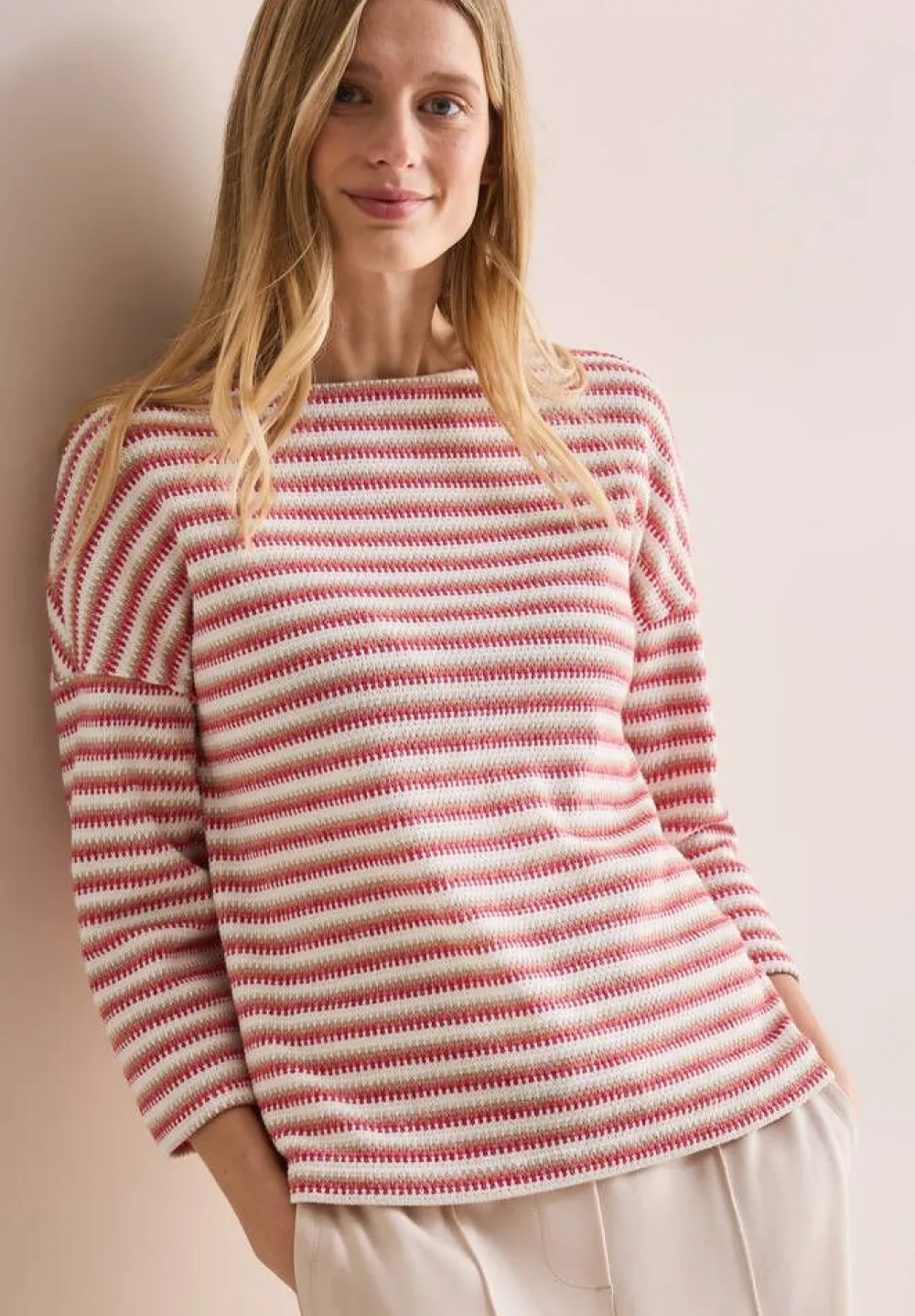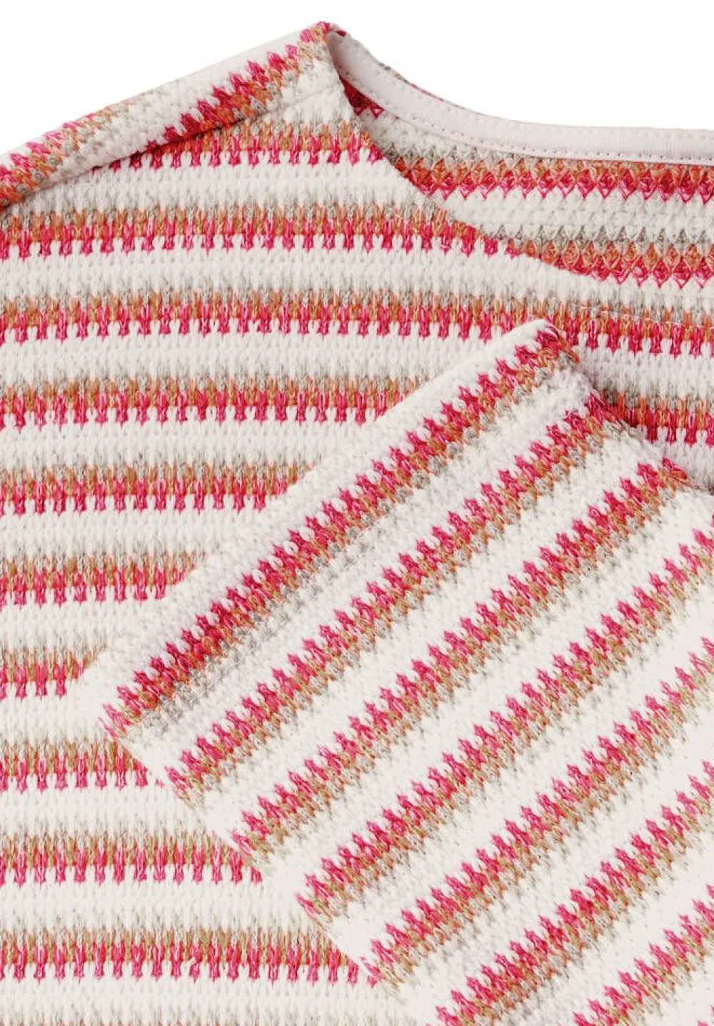Raikas raidallinen neulepusero 3/4 hihoilla.Lisää tietojaKeskitakapituus cm:63cmMateriaali:65% polyesteri, 30% viskoos…