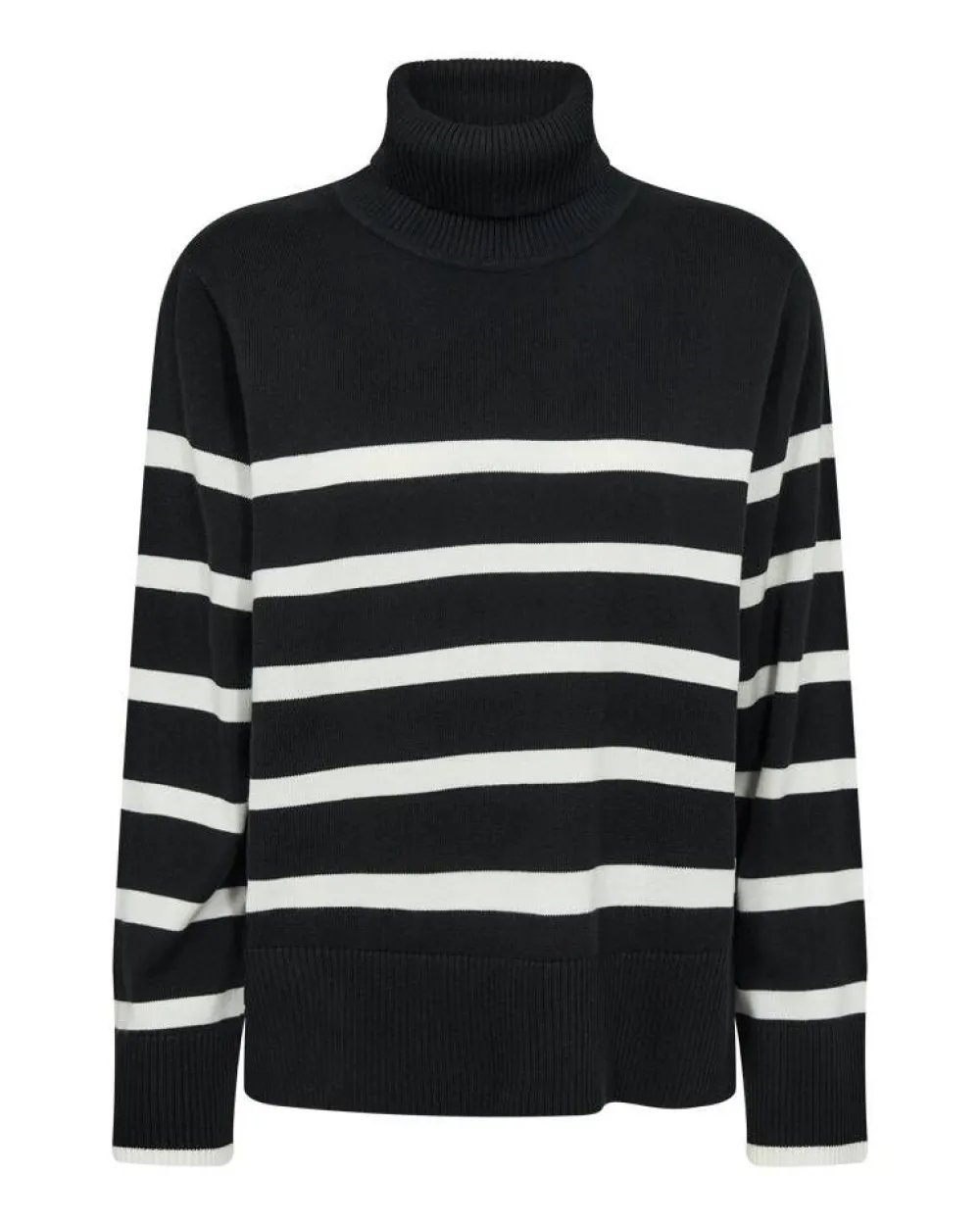 Raidallinen neule pitkillä hihoilla ja mukavalla poolokauluksella.Lisää tietojaHoito-ohje:Vesipesu 30Materiaali:55% a…