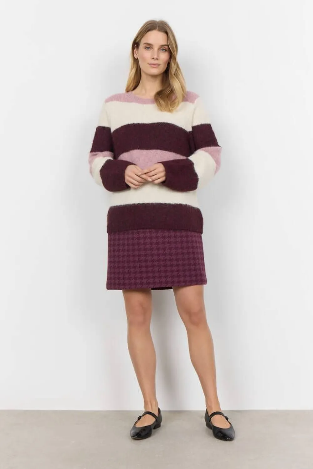 Pehmeä neule pitkillä hihoilla ja raikkaalla raitakuosilla.Lisää tietojaHoito-ohje:Vesipesu 30Materiaali:59% kierrä…