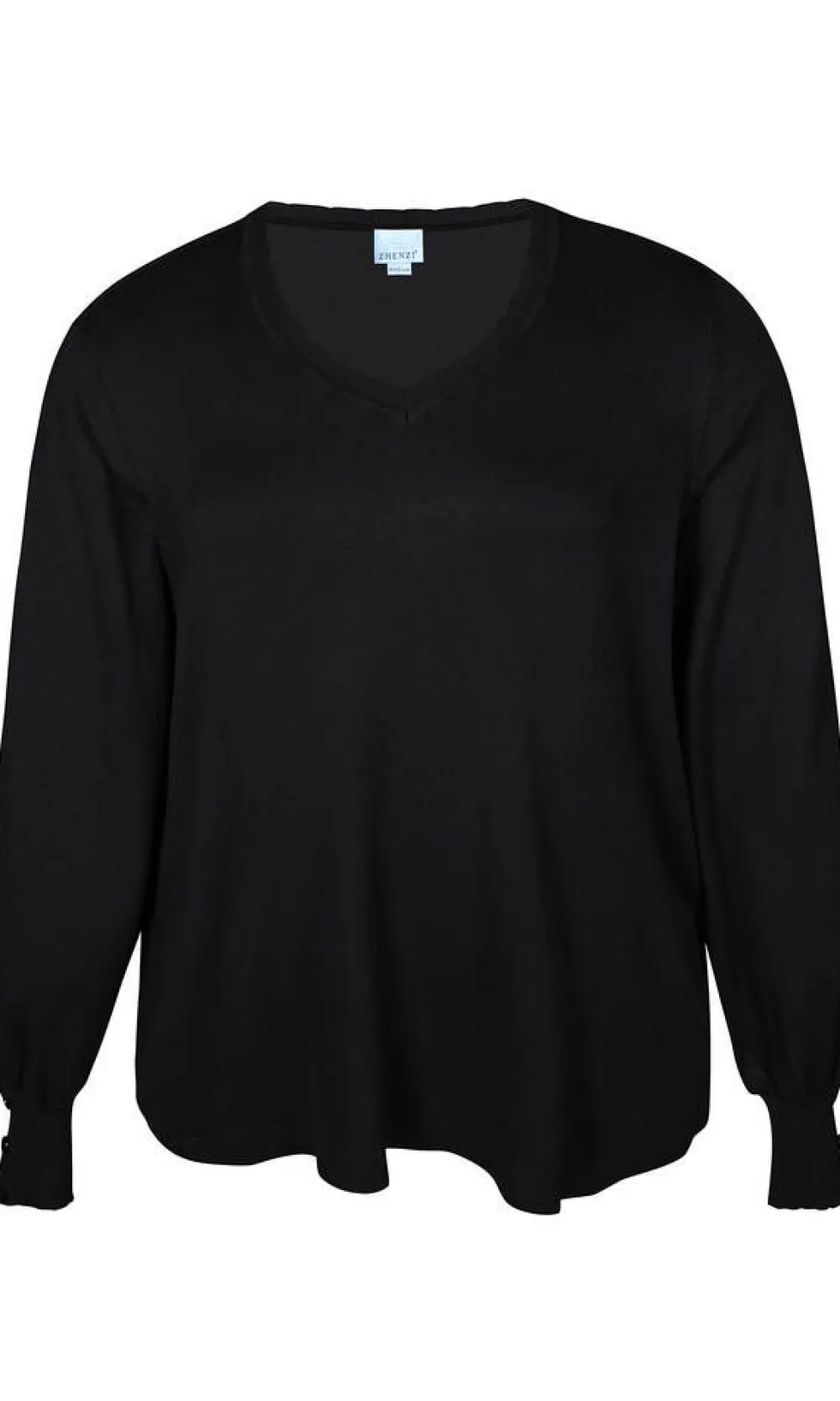 Elegantti pussihihainen neulepusero v-pääntiellä. Hihansuissa on nappirivi.Lisää tietojaPlus-mitoitusMateriaali:70%…