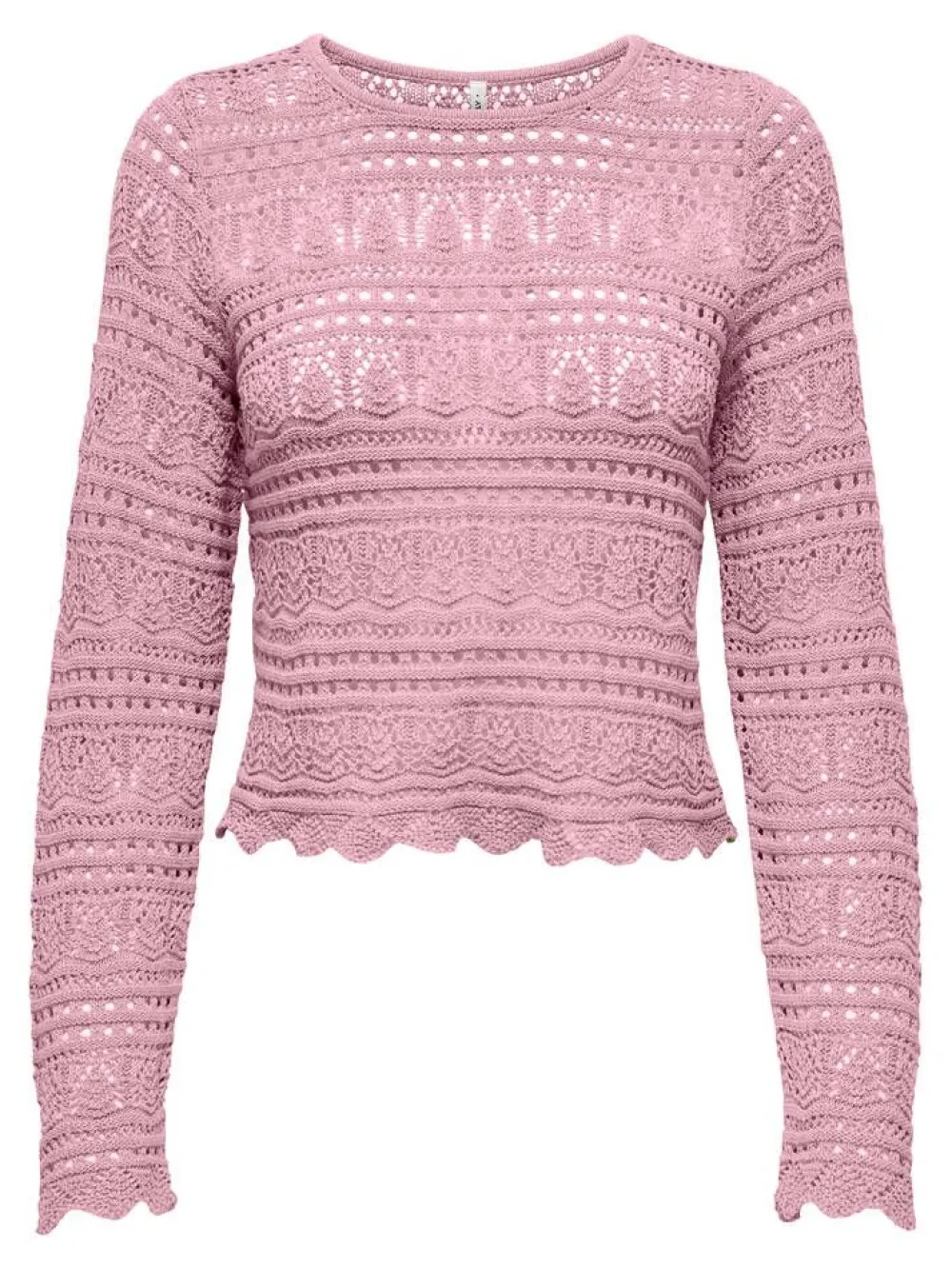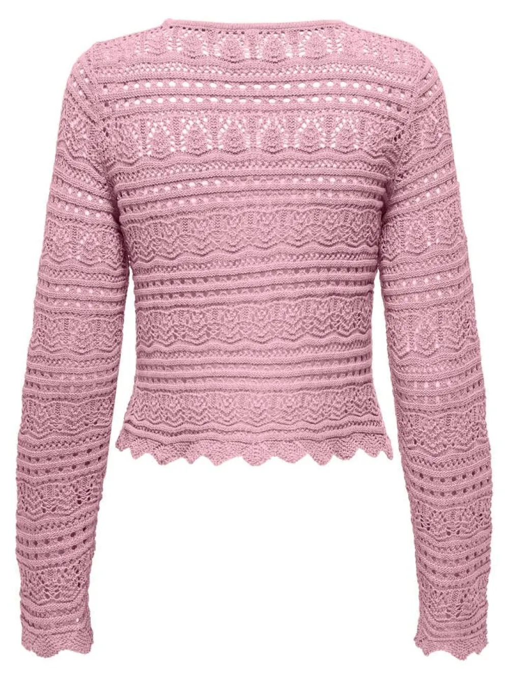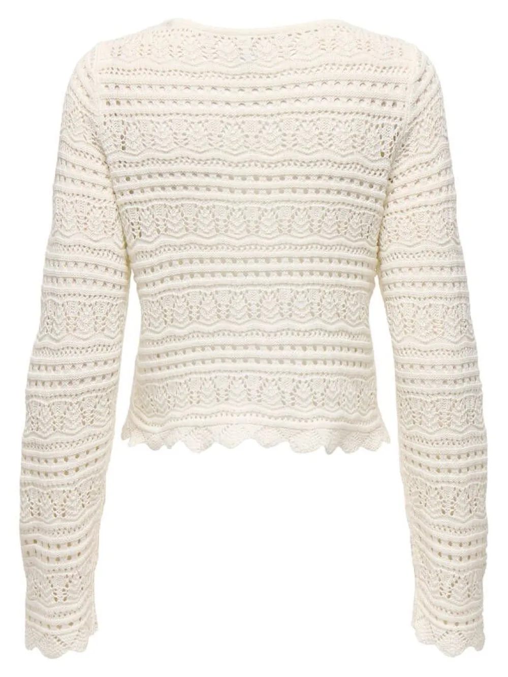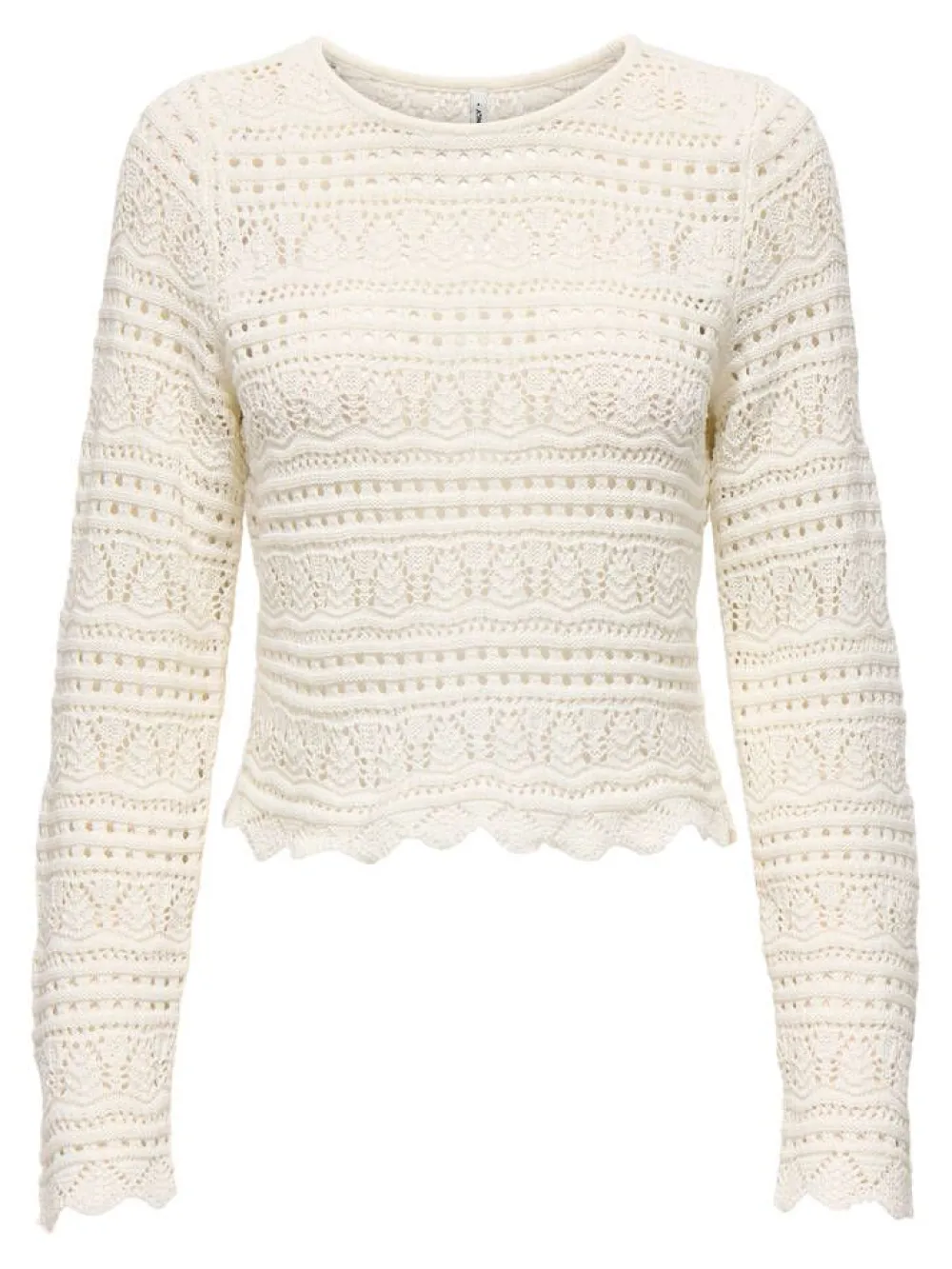 Pehmeä neulepusero kauniilla pitsikirjailulla. Lyhyt malli, pyöreä pääntie ja pitkät hihat.Lisää tietojaHoito-oh…