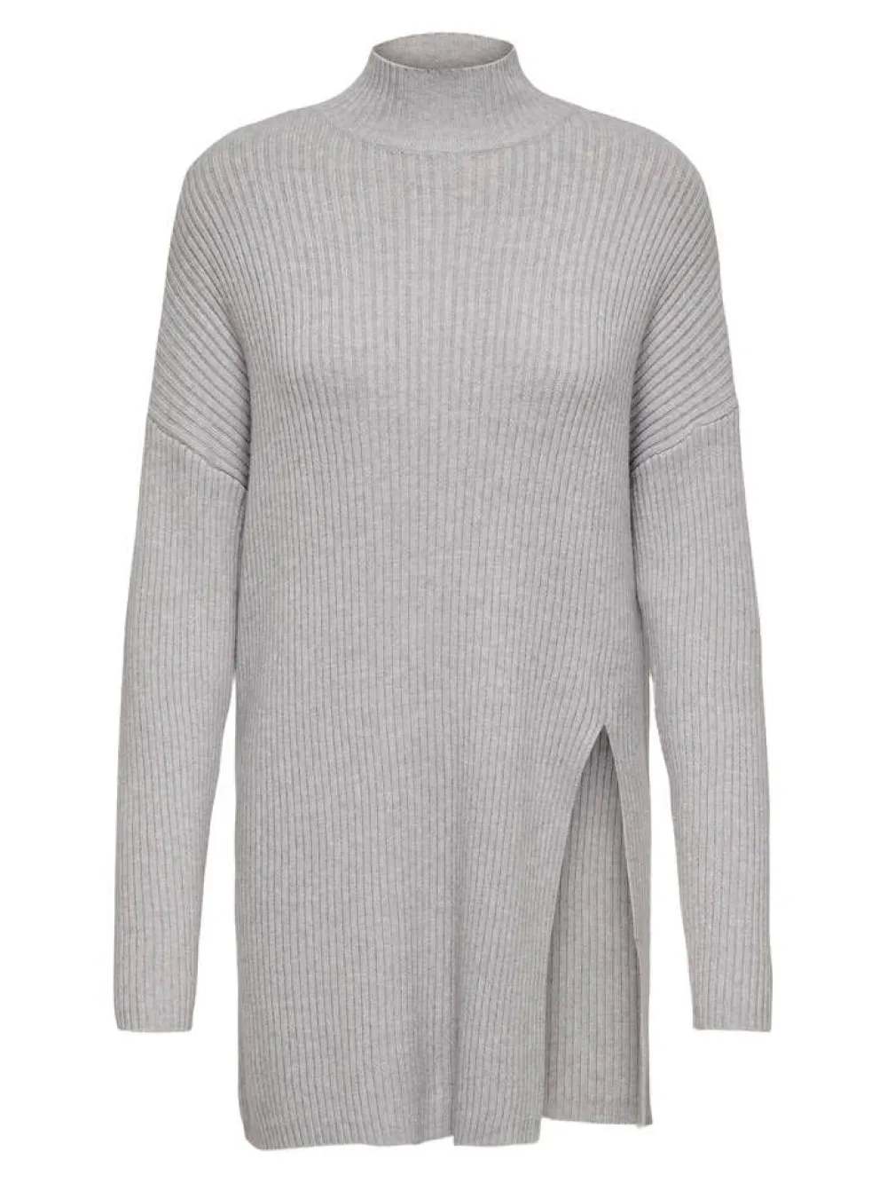 Yksinkertaisuudellaan säväyttävä pitkähelmainen neulepaita. Korkea kaulus lisää ripauksen ryhdikkyyttä muuten re…