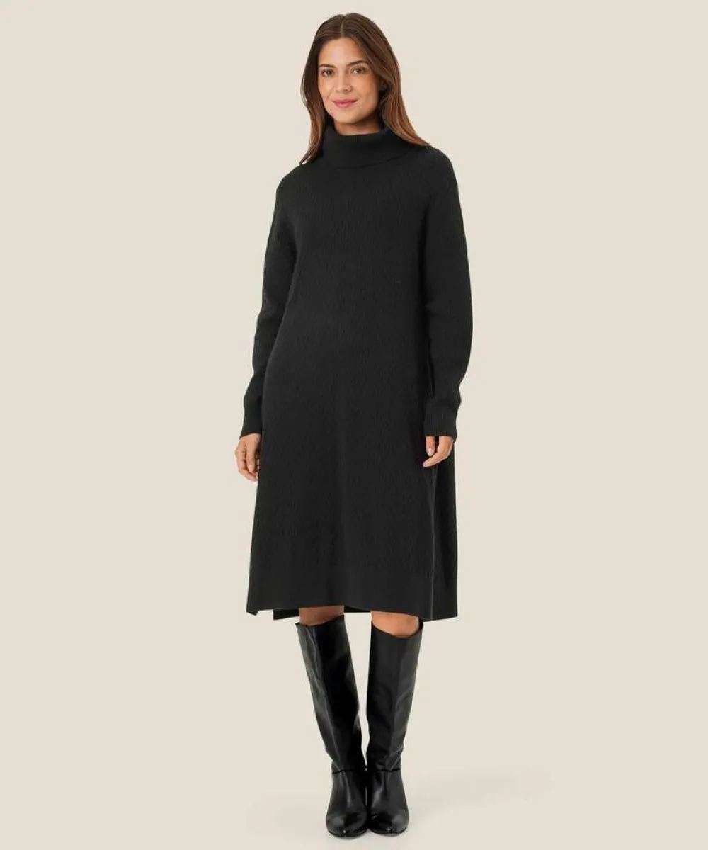 Rennon tyylikäs moneen tilaisuuteen sopiva a-linjainen neulemeko, jossa on taitettu poolokaulus ja salmiakkikuvioista n…