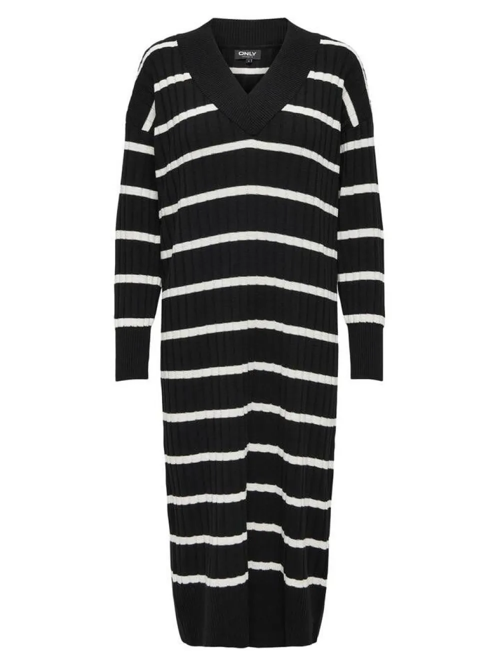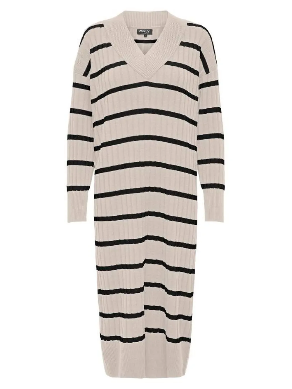 Todella mukava ja monikäyttöinen midimittainen neulemekko V-pääntiellä. Raidallinen kuosi on näyttävää ribbineu…