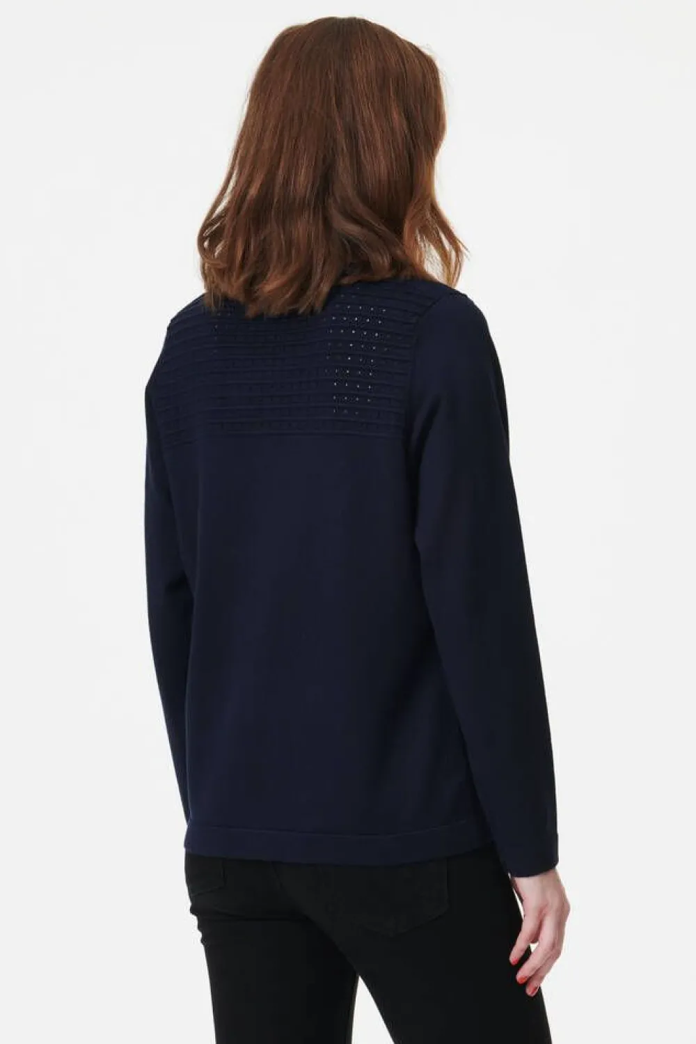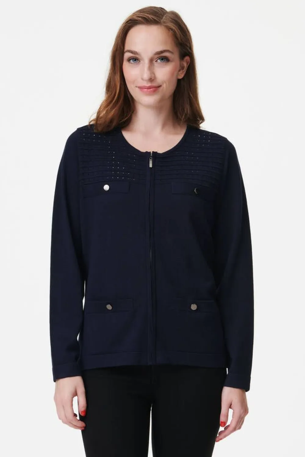 Vetoketjullinen neuletakki napillisilla etutaskuilla ja rinnan koristetaskuilla. Yläosa on tyylikästä reikäneulosta….