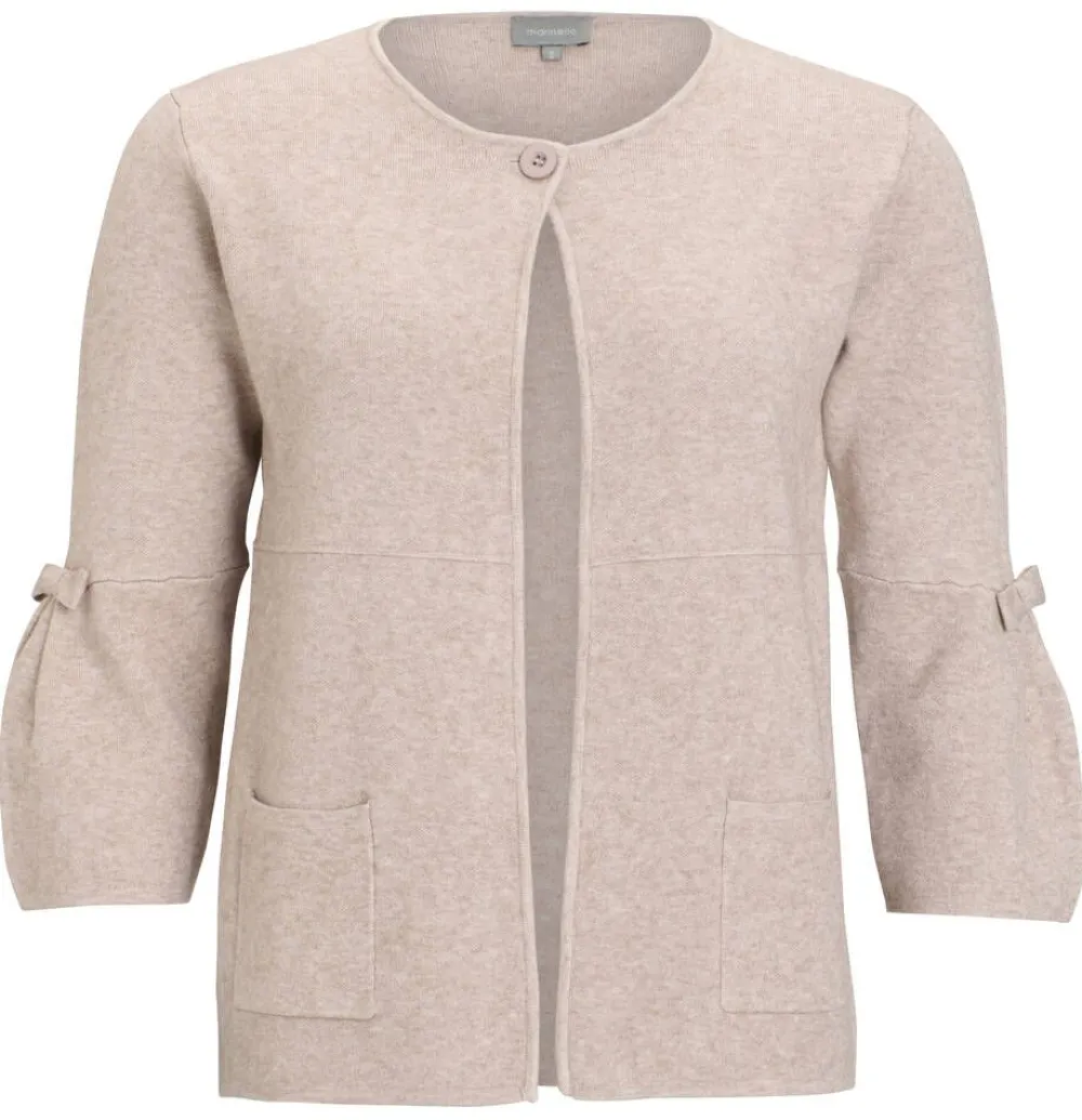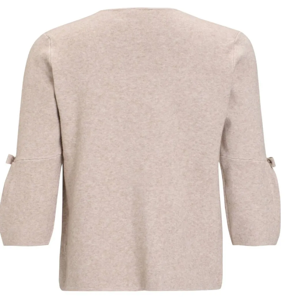 Klassinen yksivärinen neuletakki, jossa pääntiellä on yksi nappi. Keveät 3/4 hihat rusettikoristeilla.Lisää tieto…