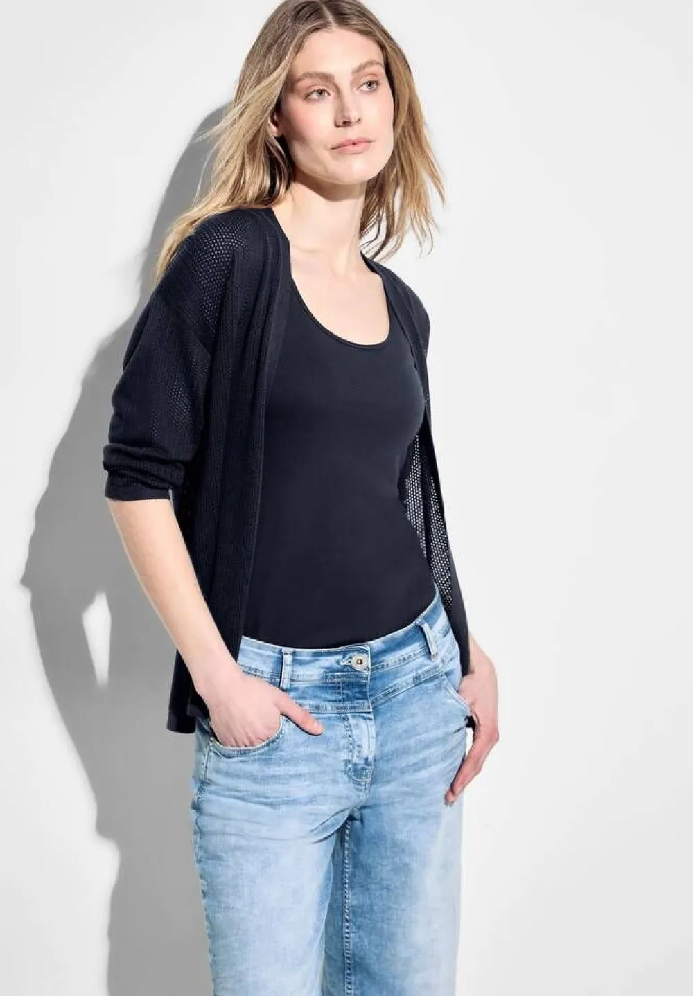 Kevyt puuvillasekoitteinen neuletakki ohuella reikäneuloksella. Tässä mallissa ei ole kiinnitystä.Lisää tietoja3/4…