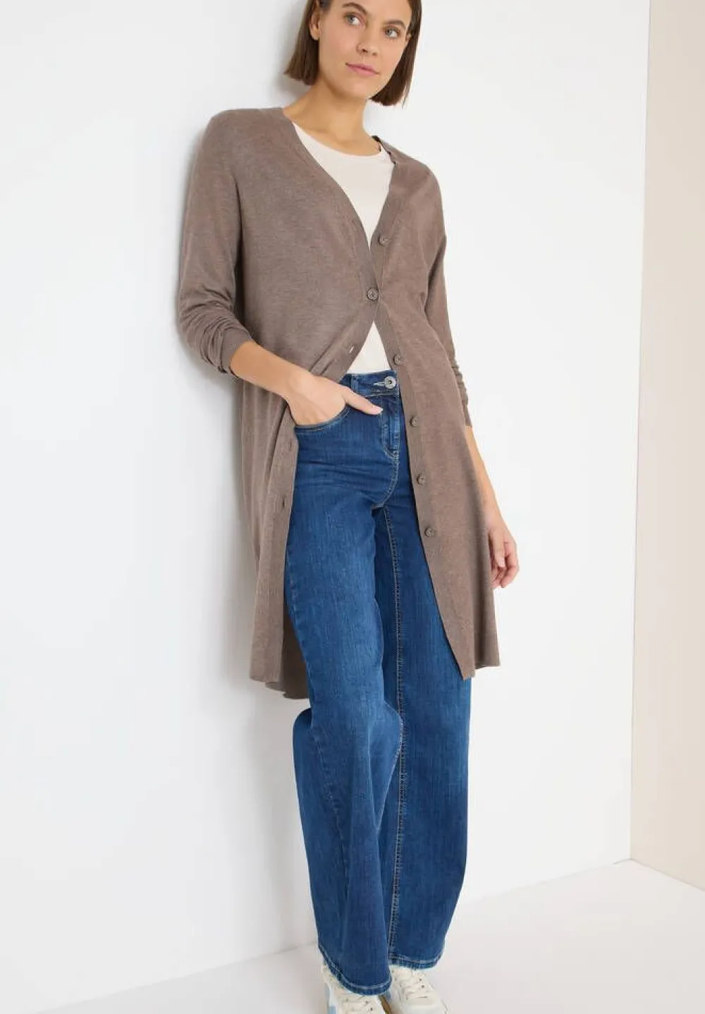 Klassinen pitkä neuletakki, jossa edessä on pitkä napitus.Lisää tietojaKeskitakapituus cm:90cmKiinnitys:NappiMateri…