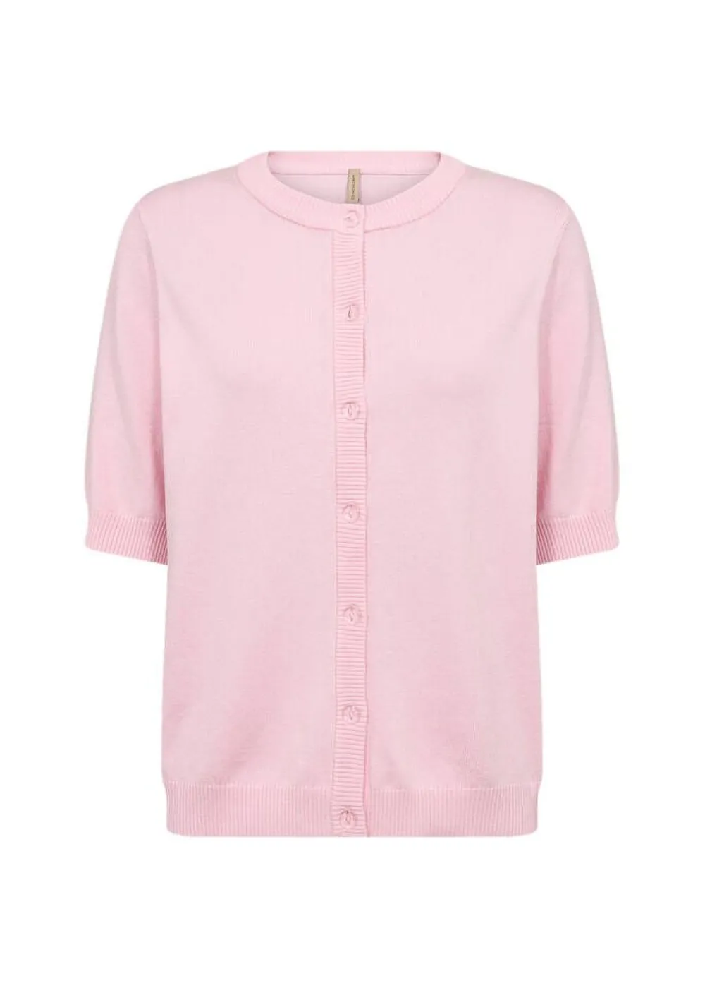 Lyhythihainen ja sileäpintainen neuletakki klassisella pyöreällä pääntiellä ja etupuolen nappikiinnityksellä.Lis…