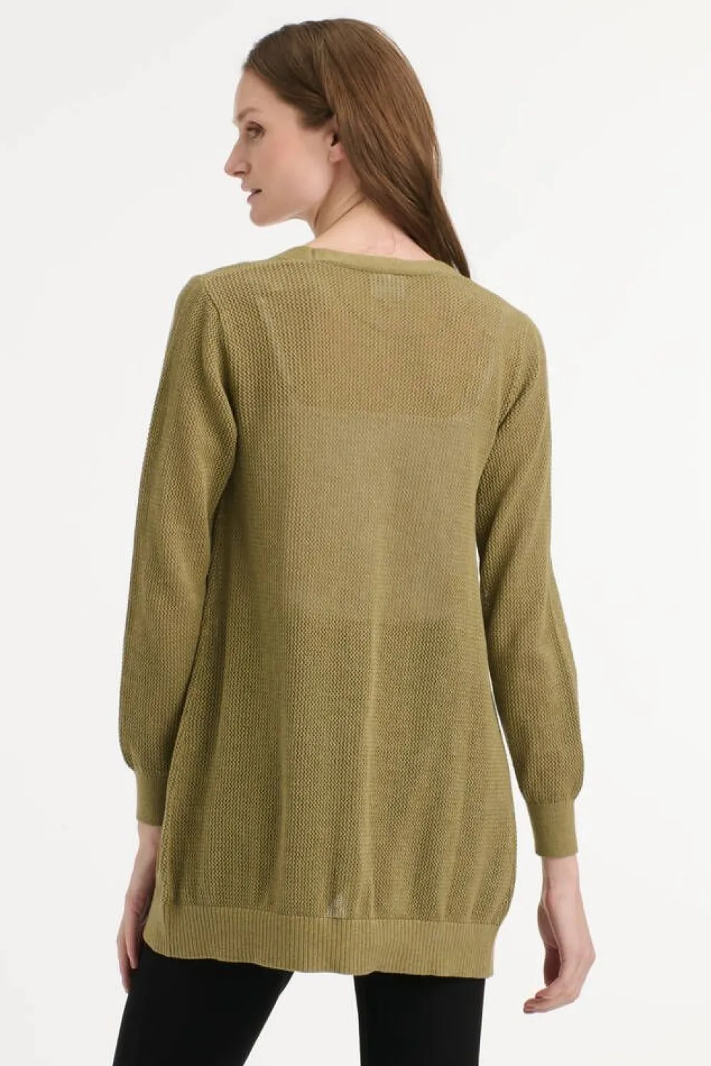 Pitkä puuvillainen verkkostruktuurinen neuletakki.Lisää tietojaMalli käyttää kokoa SMallin mitat: rinnanympärys 8…