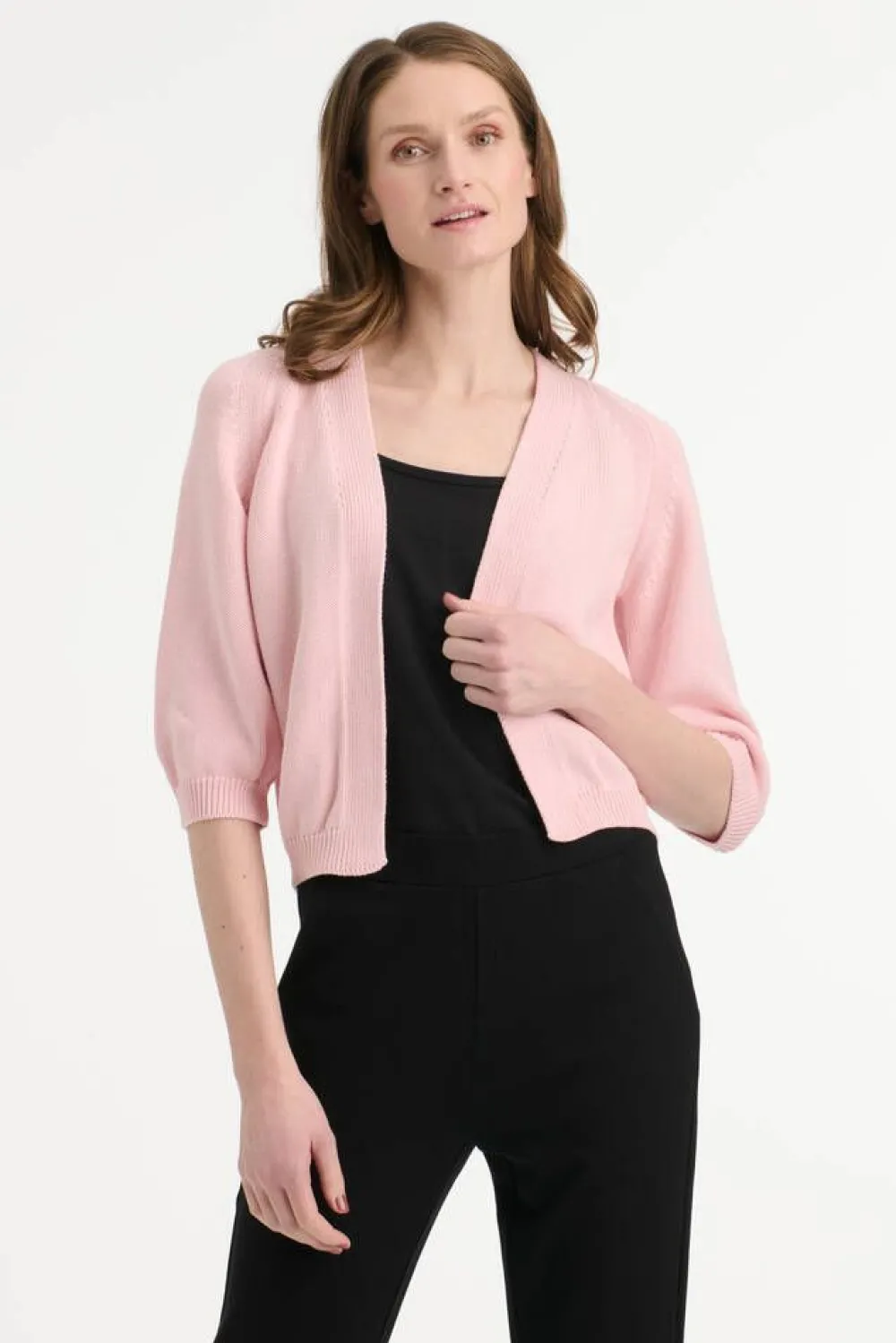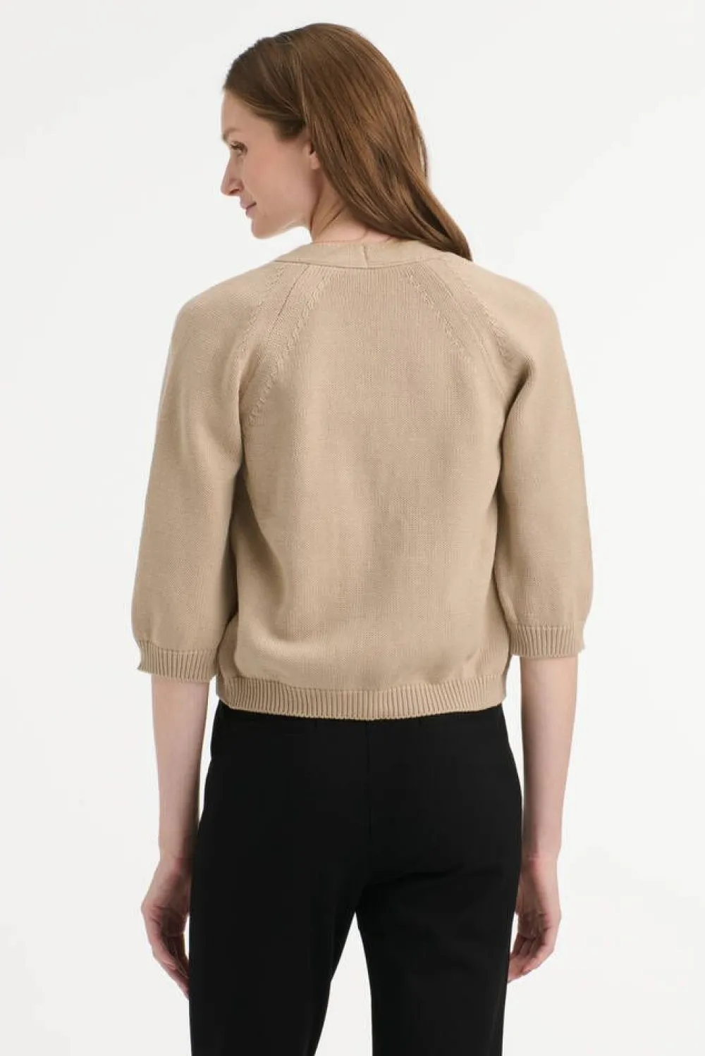 Luomupuuvillainen lyhyt neuletakki 3/4-raglanhihoilla.Lisää tietojaMalli käyttää kokoa SMallin mitat: rinnanympäry…
