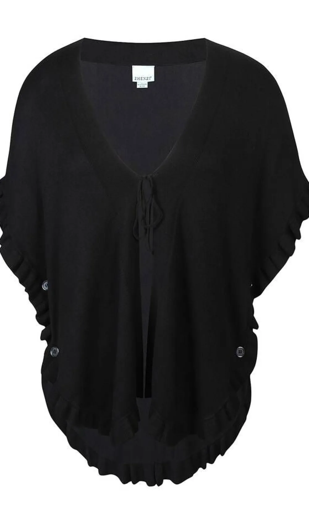 Persoonallisempi neuletakki, joka tuo leikkisyyttä asuun. Reunoja koristaa modernit frillarypytykset ja sivusaumoissa o…