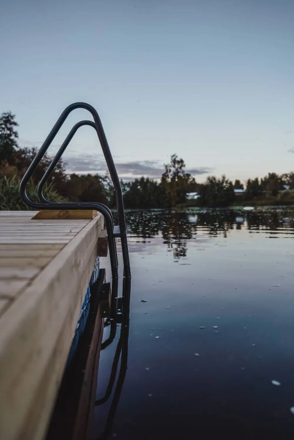 | Mitat:170×51 cm. Tikkaiden leveys on 51 cm, korkeus laiturin pinnasta 53 cm ja mitta ala-askelmasta laiturin pintaan 108 cm. |