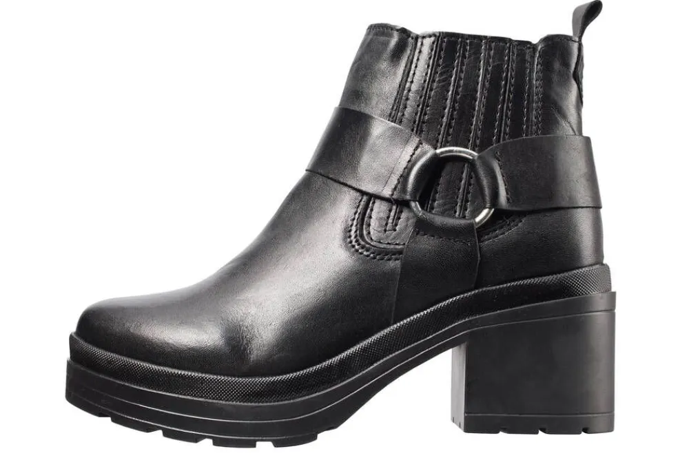 Naisten nahkaiset nilkkurit, joissa on paksu tolppakorko ja varressa koriste.Lisää tietojaMateriaali:NahkaSisäpohjan …