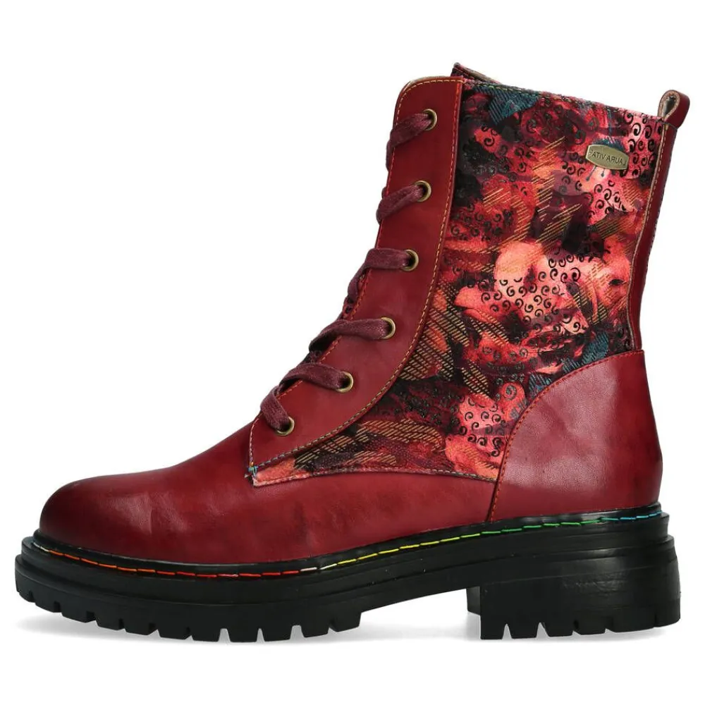 Klassisesti muotoillut maiharimalliset nilkkurit tunnistettavalla viimeistelyllä; pritattu pintanahka ja monivärinen t…