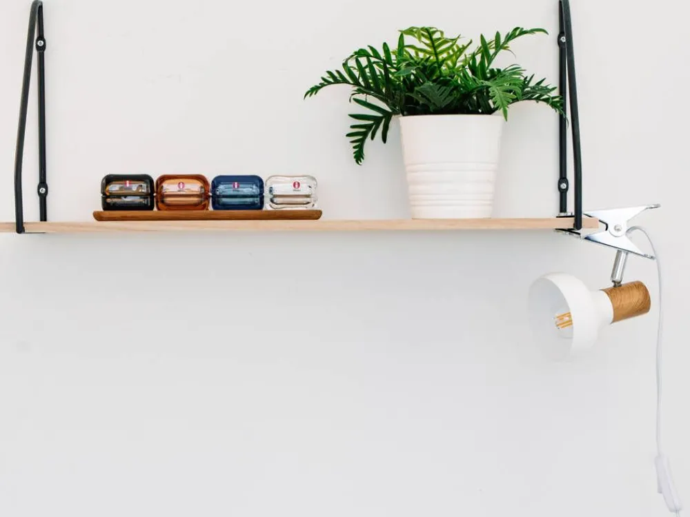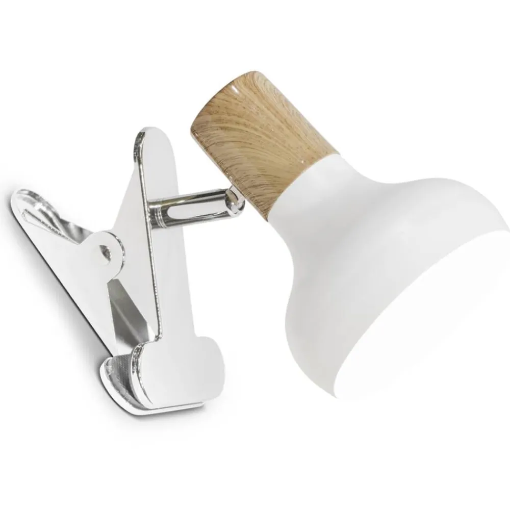 Upea valkoisen ja puunvärinen nipistinvalaisin. Koska nipistinvalaisinta ei tarvitse kiinnittää, on helppoa löytää…