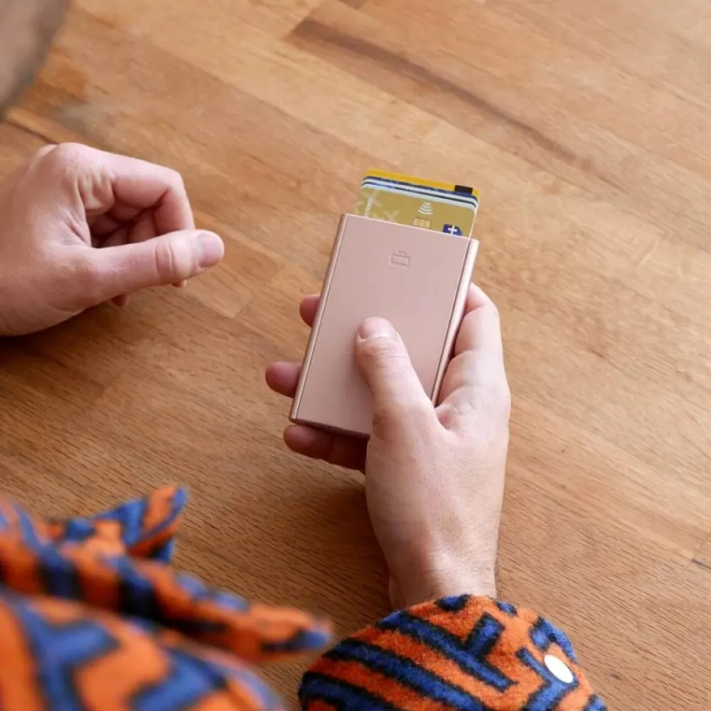 Ögonin RFID suojattu Slider on kompakti luottokorttikotelo kätevällä mekanismilla, jolla kotelossa olevat kortit saa…