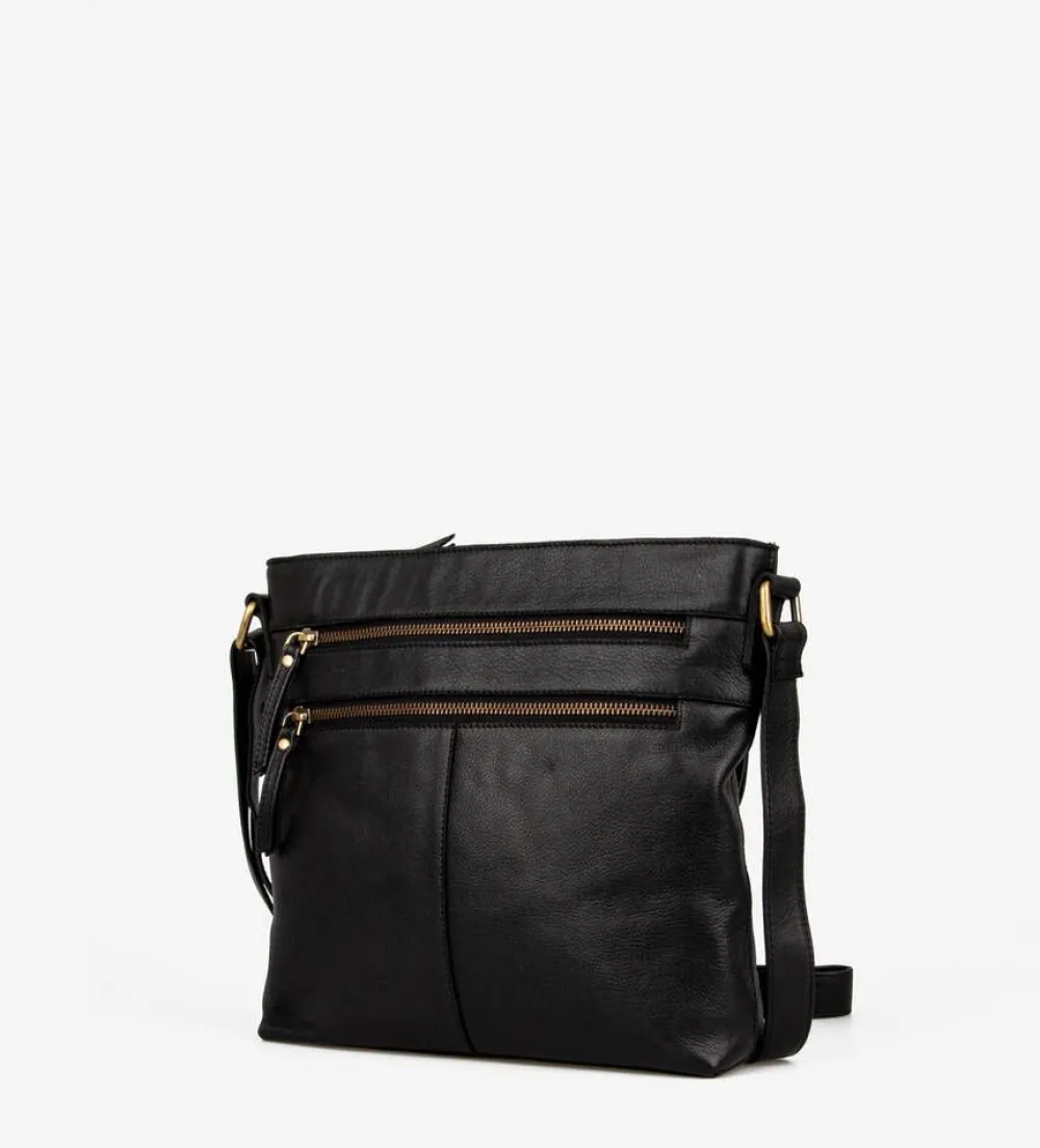 Käytännöllinen olkalaukku säädettävällä olkahihnalla ja vetoketjutaskuilla sekä ulko- että sisäpuolella.Lisä…