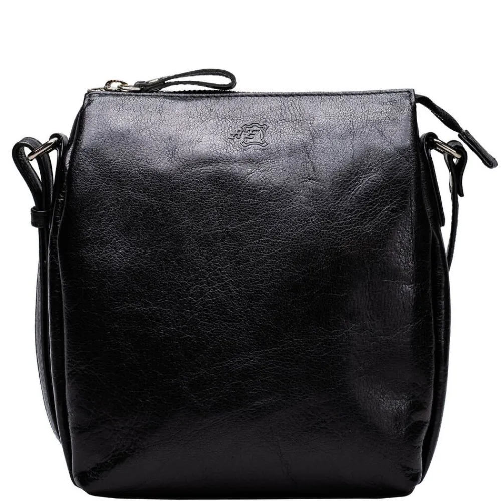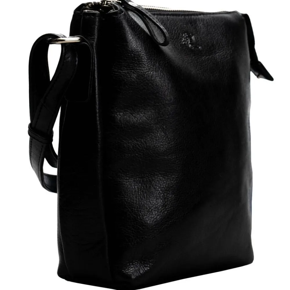 Monipuolinen ”lokerounelma”; nahkalaukku säädettävällä olkahihnalla. Laukku suljetaan vetoketjulla. Sisällä on ko…