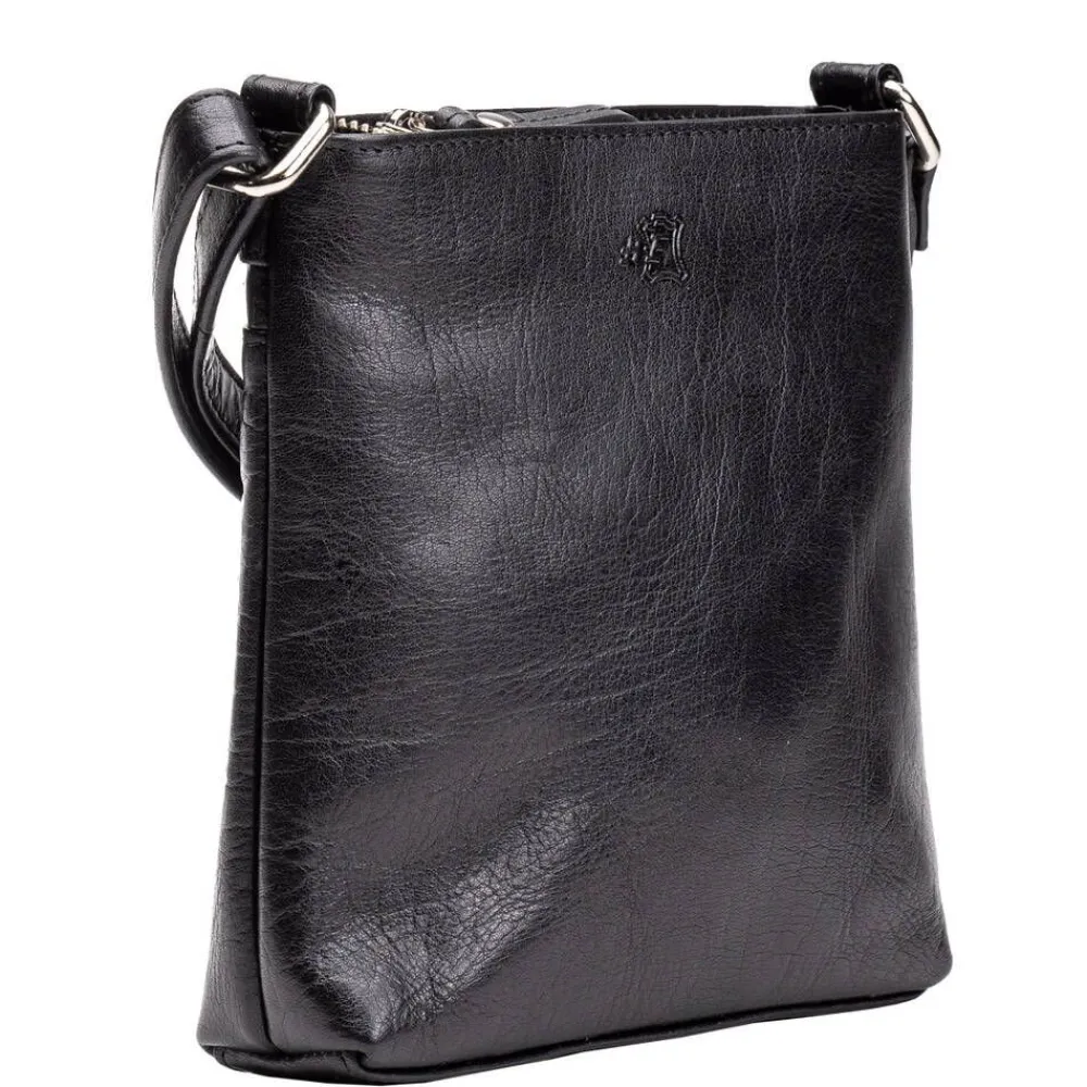 Pieni pelkistetty nahkainen olkalaukku ilman turhia koristeita. Laukku suljetaan vetoketjulla ja niin sen takaa kuin sis…