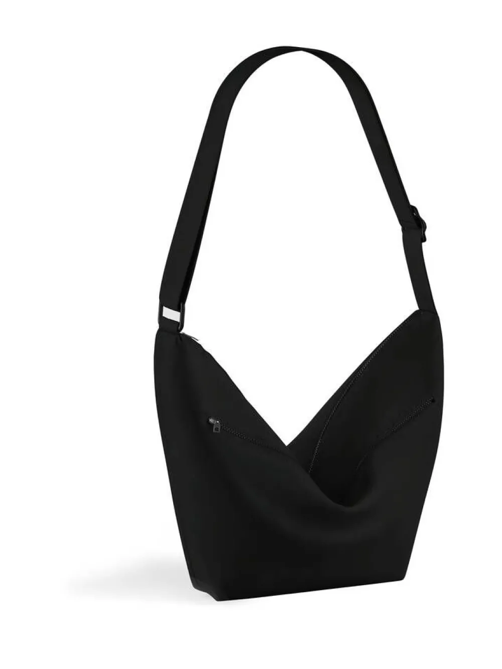 Tilava ja trendikäs kassimallinen olkalaukku kaarevalla muodolla ja säädettävällä olkahihnalla. Sisäpuolella ja u…
