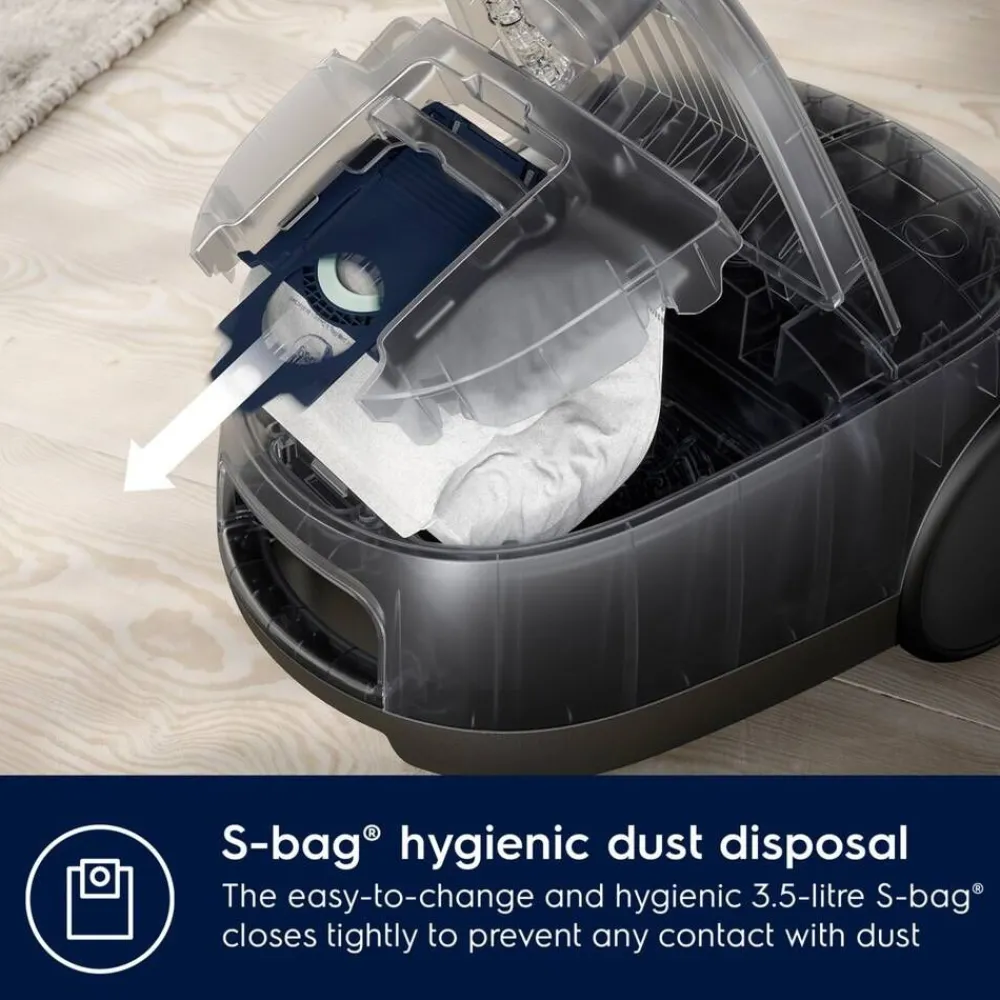 | Tekniset tiedot -Suodatin: Pestävä hygieniasuodatin E12 – Äänitehotaso dB(A): 73 – Toimintasäde (m): 12 – Pölypussin/säiliön täyttymisen osoitin: Mekaaninen – Pölypussin tyyppi: s-bag® classic long performance – Pölypussin tilavuus (l): 3,5 – Pölypussit pakkauksessa (kpl): 1 – Pölypussin paikallaolon varmistus: On – Suodattimen ilmaisin: – Moottorisuodatin: On – Kädensija: Standardi (kaareva) – Lattiasuulake: Dust Magnet Silent – Mukana tulevat muut suulakkeet: Parketto Pro lukituksella – Imuputken pidike: Tauko ja säilytys – Liitäntäteho max (W): 850 – Imuteho (W): 232 – Ilmanvirtaus max (l/s): 33 – Alipaine (kPa): 20.3 – Ylikuumenemissuoja: On – Pehmeä käynnistys: On – Imuputki: Telescopic- Stainless Steel- Interlocking_32mm – Tehonsäätö: Portaaton, kiertokytkimellä – Pyörät/jalat: Pienet pyörivät- Johdonkelaus: On – Virtajohdon pituus (m): 9 – Imuriosan paino, ilman varusteita (kg): 5 – Leveys (mm): 436.7- Korkeus (mm): 238.5- Syvyys (mm): 306.6 – Nettopaino (kg): 6.77 – Väri: Granite Grey recycled – EAN-koodi: 7332543822966- Mallisto: 600 Bagged cleaner |