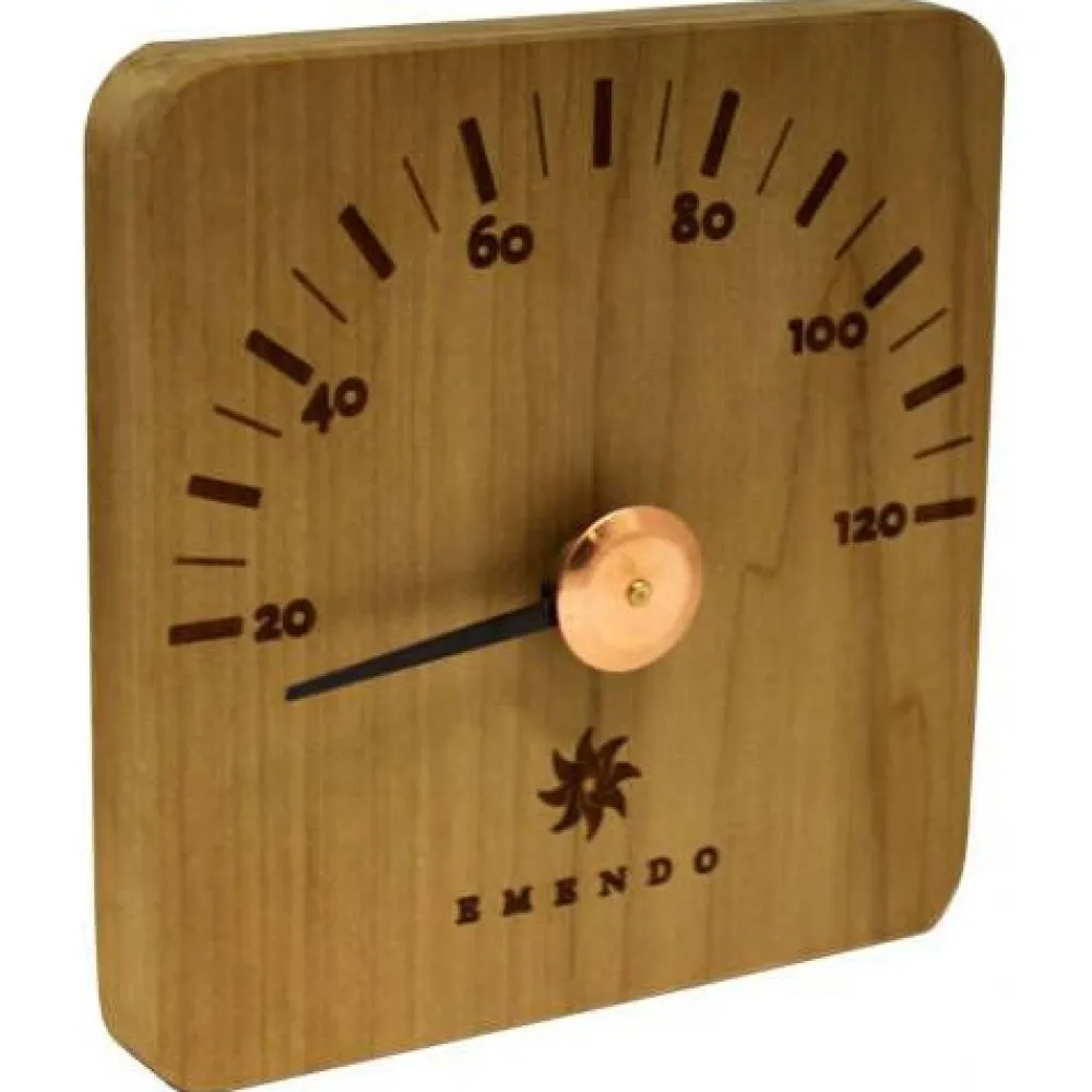 Emendon löylymittari on valmistettu suomalaisesta lämpökäsitellystä haavasta. Lämpökäsitelty puu sopii hyvin kosteisiin tiloihin. Käsittelyn vaikutuksesta puu säilyttää muotonsa ja siitä tulee lahonkestävää. Lämmössä syntyneet kauniit värisävyt voidaan halutessa suojata öljyämällä.