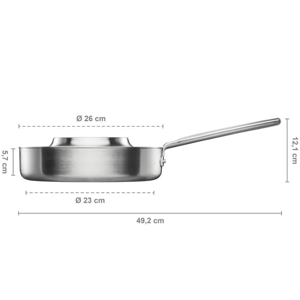 | Mitat:Halkaisija 26 cm. Pohjan halkaisija 23 cm. Pohjan paksuus 3,5 mm. |