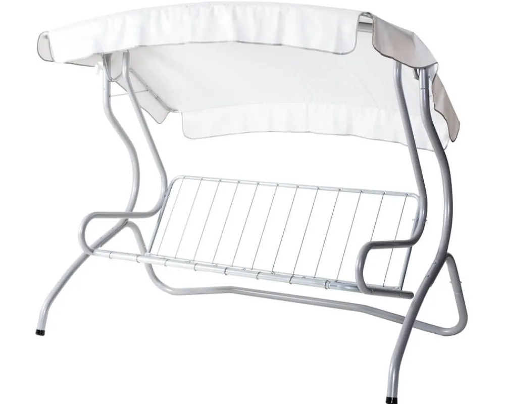 | Hoito-ohjeet:Keinun voi puhdistaa pyyhkimällä kostealla liinalla ja käyttää tarvittaessa mietoa pesuainetta. Suosittelemme, että pehmusteet nostetaan sateella suojaan ja katos otetaan pois rankkasateiden ja kovien tuulien ajaksi. |