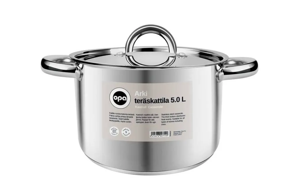 | Mitat:5 l. Suuaukon halkaisija 22 cm, pohjan halkaisija 19,5 cm |