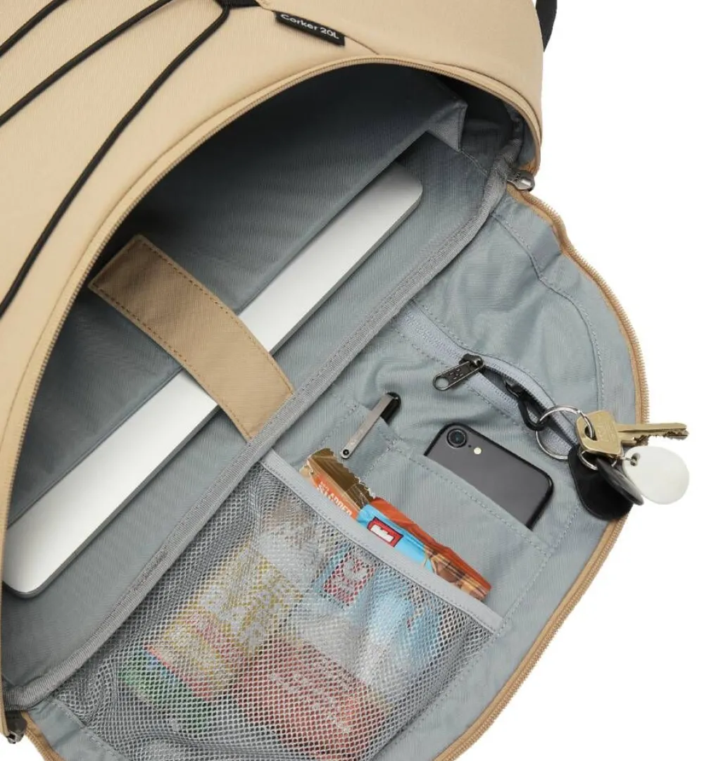 | Suuren sivuaukon kautta pääsee käsiksi koko repun sisältöön |