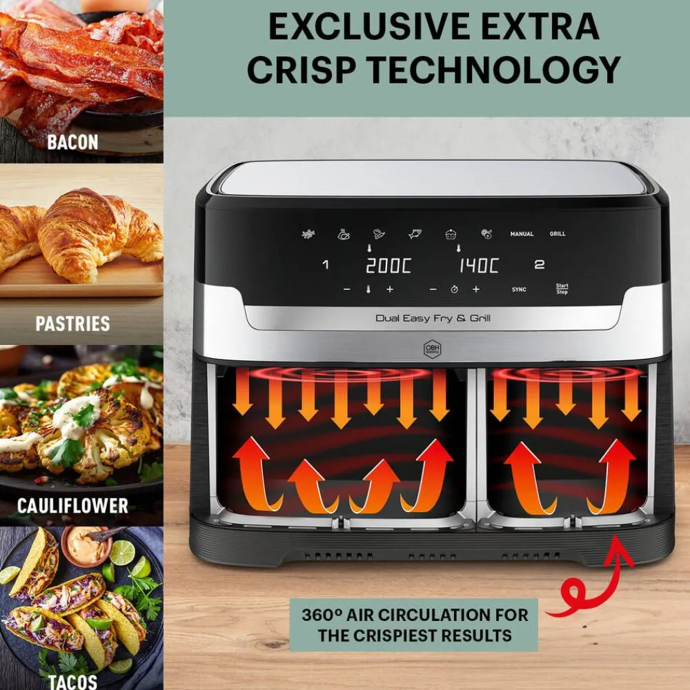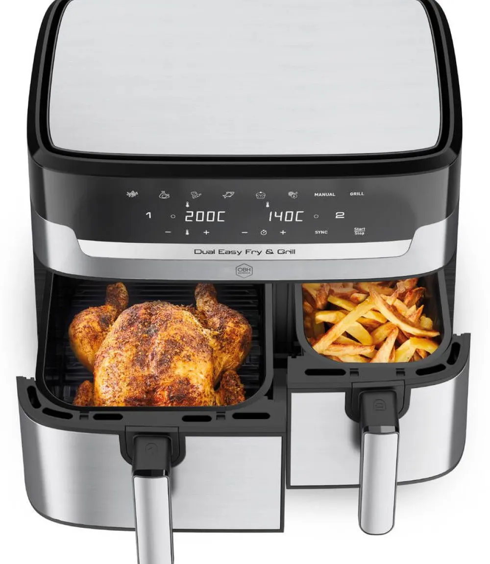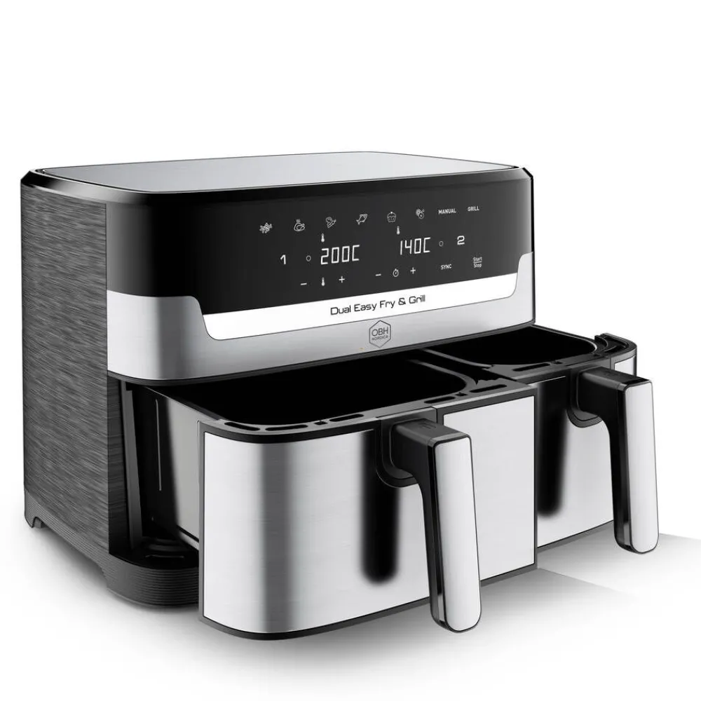 | OBH Nordican air fryer on yksinkertainen tapa pienentää kodin sähkönkulutusta. Käytettäessä Dual Easy Fry & Grill -air fryeriä energiaa kuluu jopa 65 % vähemmän ja kypsennysaika on jopa 40 % lyhyempi verrattuna perinteisiin uuneihin. Luvut perustuvat vuonna 2023 tehtyyn testiin pakasteranskalaisilla. Dual Easy Fry & Grill on korjattavissa 15 vuotta, mikä tarkoittaa, että voimme lähettää varaosia 6 200 korjaamolta ympäri maailmaa kohtuulliseen hintaan. Näin haluamme varmistaa, että tuotteen käyttöä voidaan jatkaa vuosikausien ajan. |