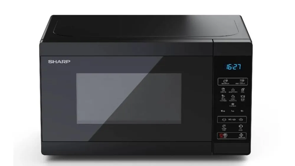 | Mikroaaltouunin litteä muotoilu on tehty helpottamaan puhdistamista. |