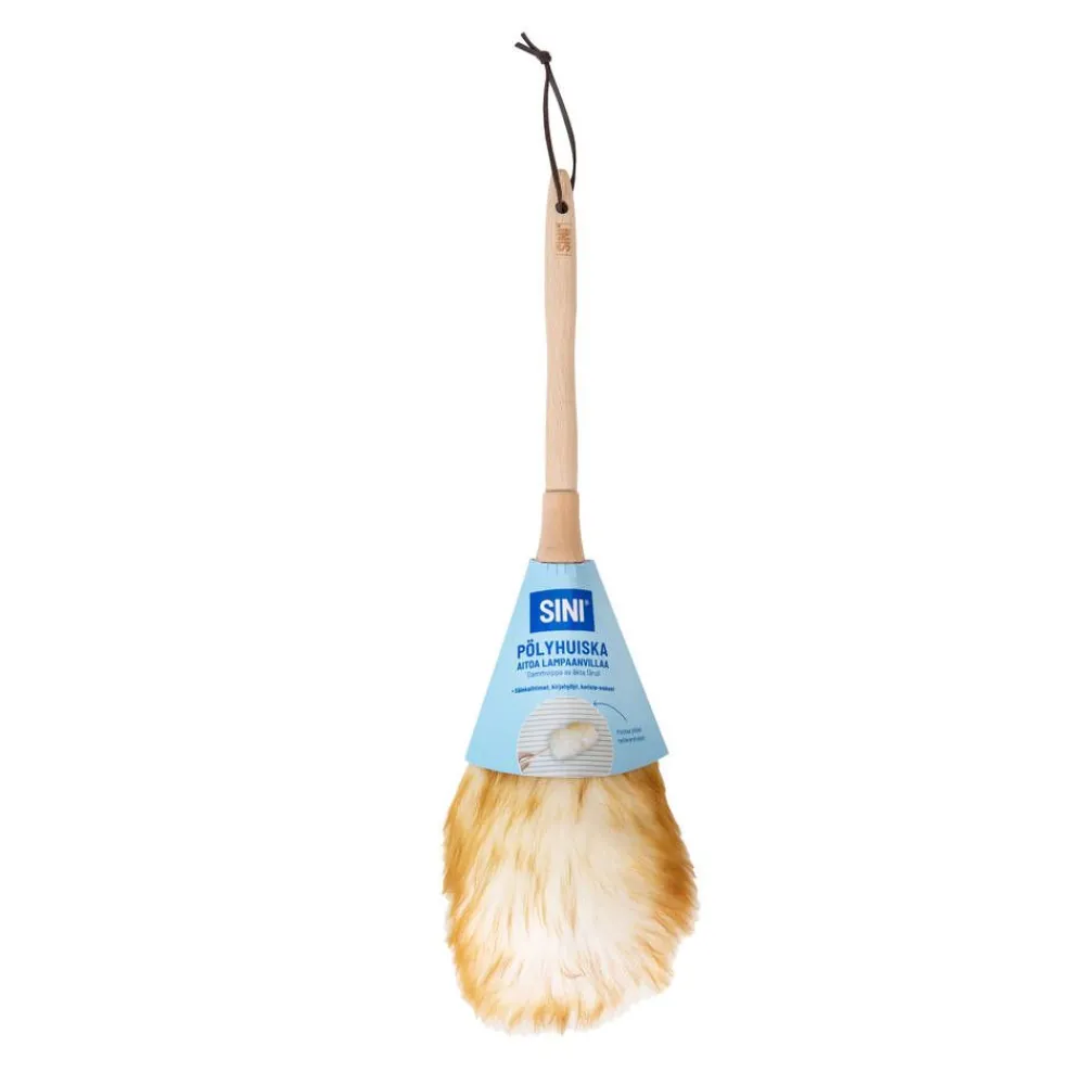 Pölyhuiska on valmistettu aidosta lampaanvillasta ja sen varsi on pyökkiä. Erinomainen pölyn poistoon aroilta pinnoilta, sälekaihtimista, kirjahyllyistä, koriste-esineistä, taulujen kehyksistä ja elektronisista laitteista. Käytä pölyhuiskaa kuivana.