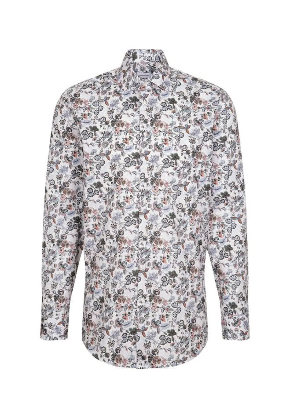 Siisti puuvillainen pitkähihainen kauluspaita tyylikkäällä kukkakuosilla. Paidassa on kent-kaulus ja valkoiset napit…