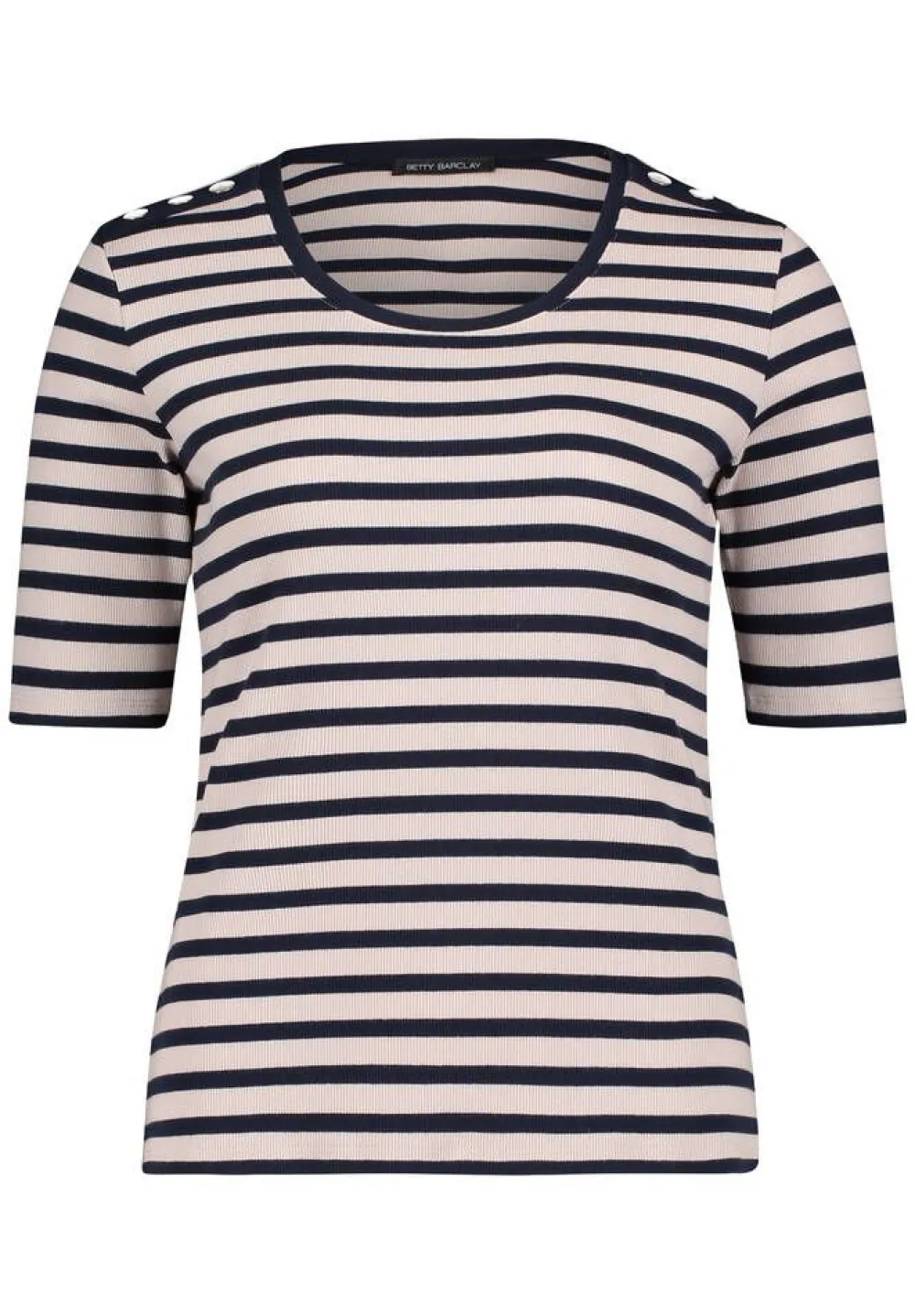 Raidallinen puuvilla t-paita, jossa on koristenapit olalla.Lisää tietojaMateriaali:95% puuvilla, 5% elastaani