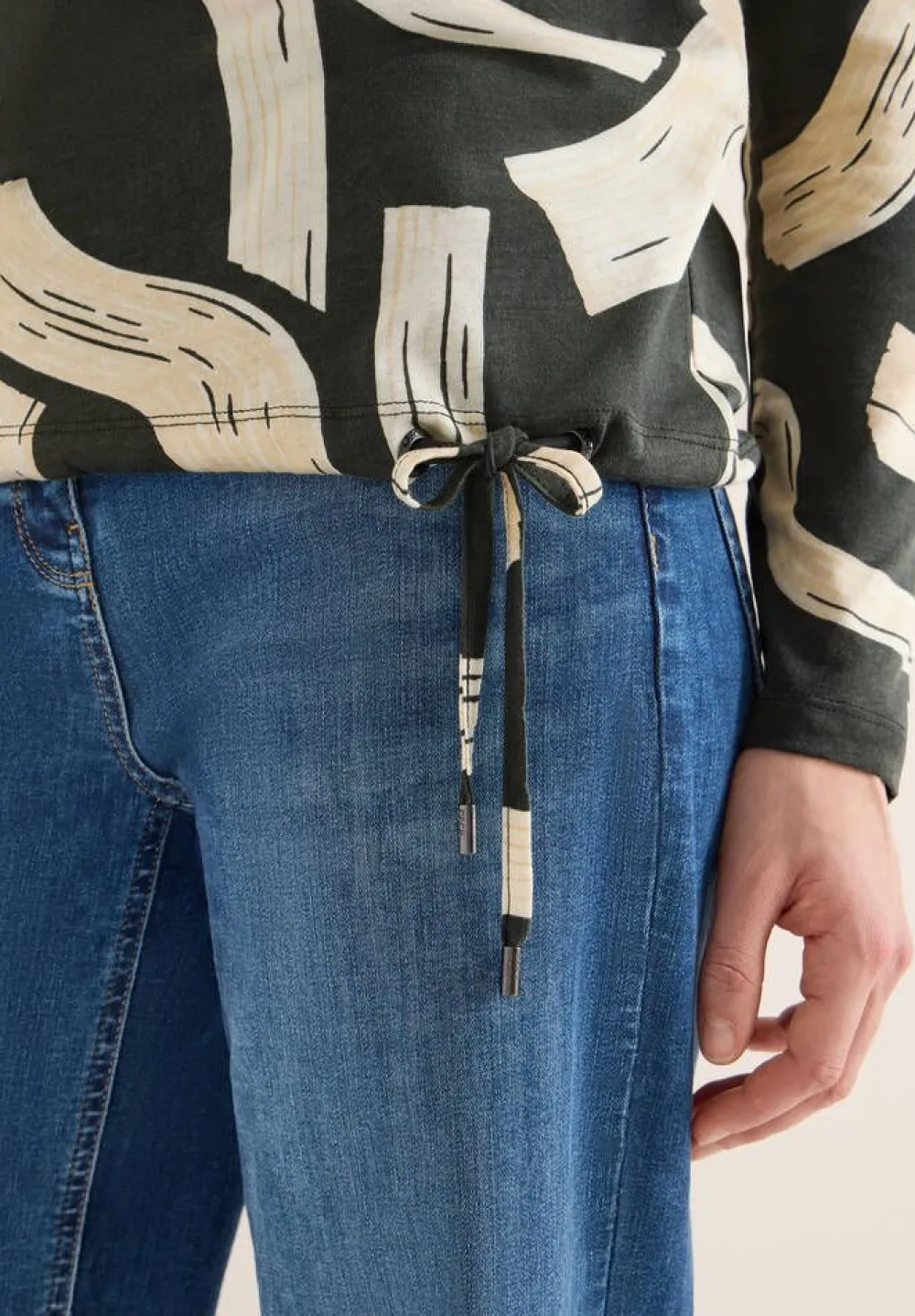 Kuviollinen trikoopaita, jossa helmassa on kiristysnauha. Pitkät hihat ja klassinen pyöreä pääntie.Lisää tietojaM…