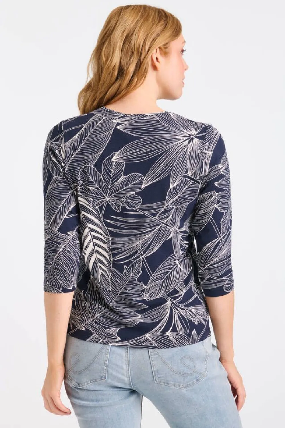 Lehtikuosinen joustava trikoopaita pyöreällä pääntiellä ja 3/4-hihoilla.Lisää tietojaMalli käyttää kokoa SMal…