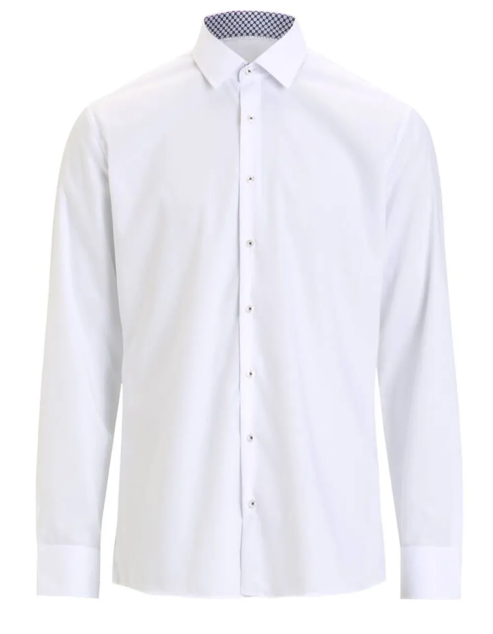 Klassisen tyylikäs paita siistillä kent-kauluksella. Slim fit malli, non iron-kangas. Kontrastikangas hihansuissa ja k…