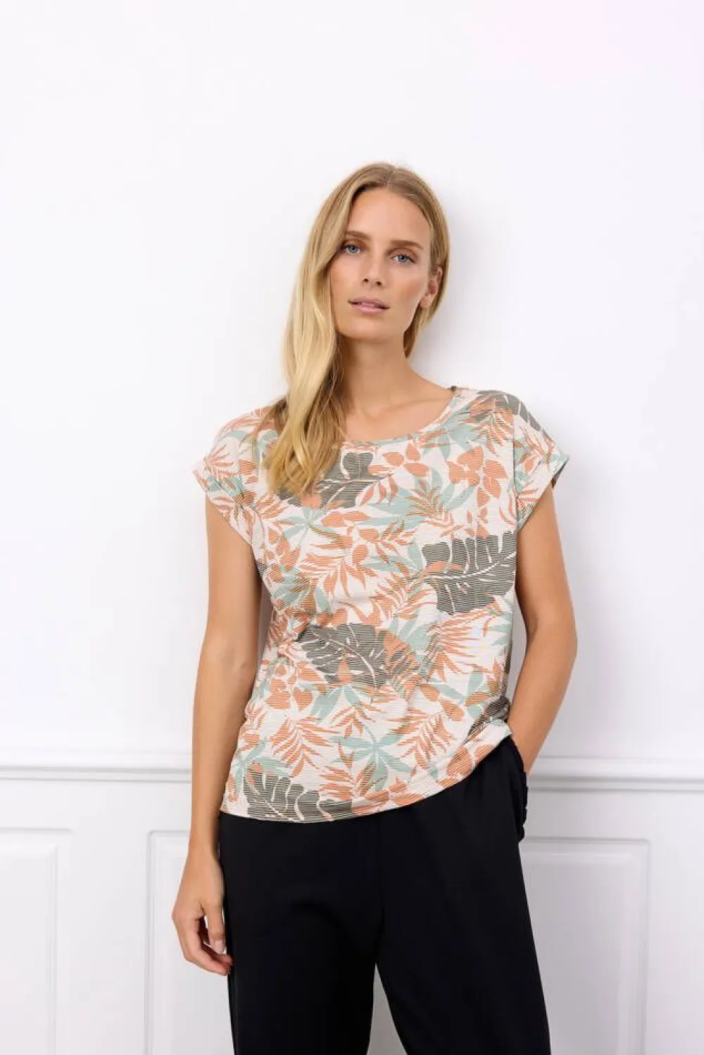 Rento t-paita himmeällä raita-/lehtikuosilla ja käännetyillä hihansuilla.Lisää tietojaHoito-ohje:Vesipesu 30Mater…