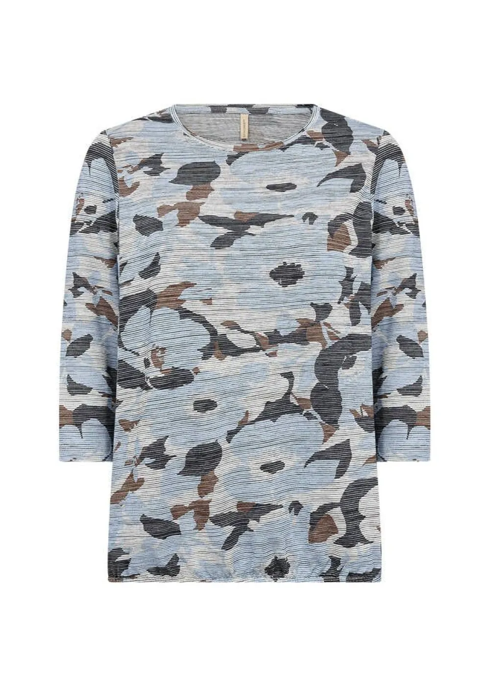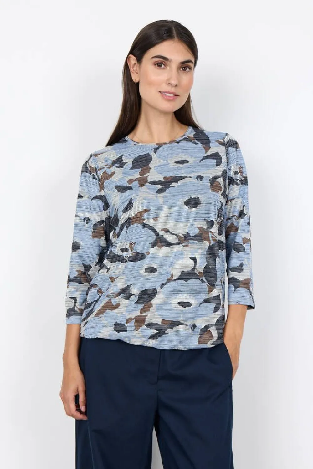 Kukka- ja raitakuviollinen trikoopaita, jossa on pyöreä pääntie, 3/4-hihat sekä mukava kuminauhalla viimeistelty he…