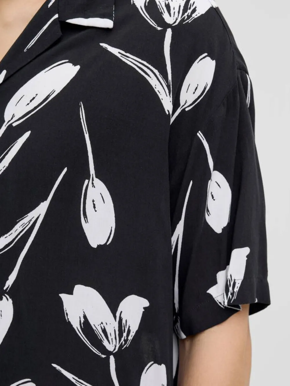Rennon tyylikäs kesäinen kauluspaita lyhyillä hihoilla ja mustavalkoisella kukkaprintillä.Lisää tietojaKiinnitys:N…