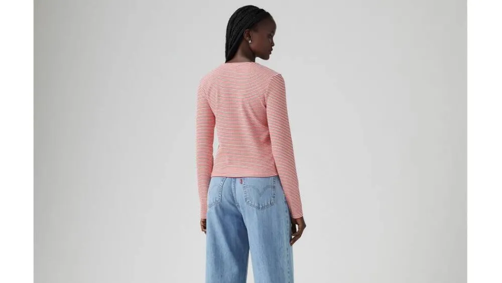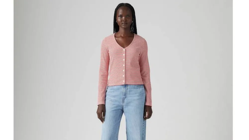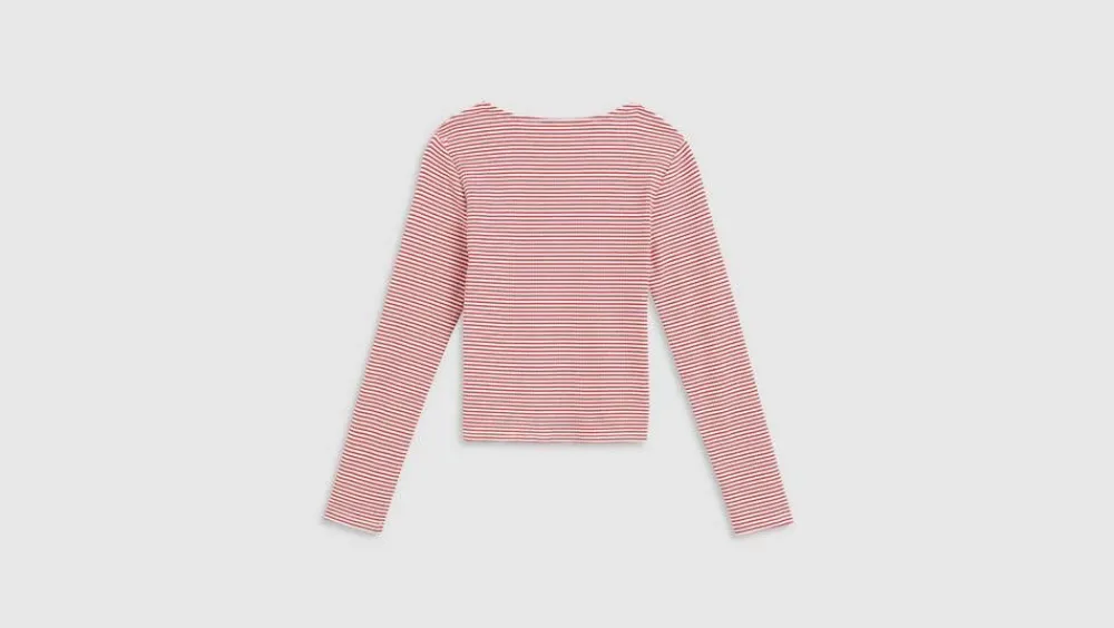 Pitkähihainen napillinen trikoopaita joustavaa ja miellyttävää materiaalia. Kapeat vaakaraidat ja v-pääntie. Kapea…