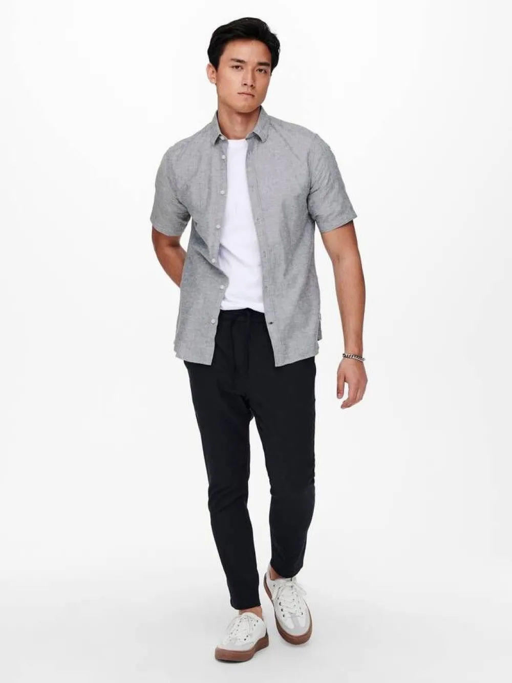 Supertyylikäs kauluspaita lyhyillä hihoilla. Slim fit istuvuus. Miellyttävä ja hengittävä pellavasekoitteinen mate…