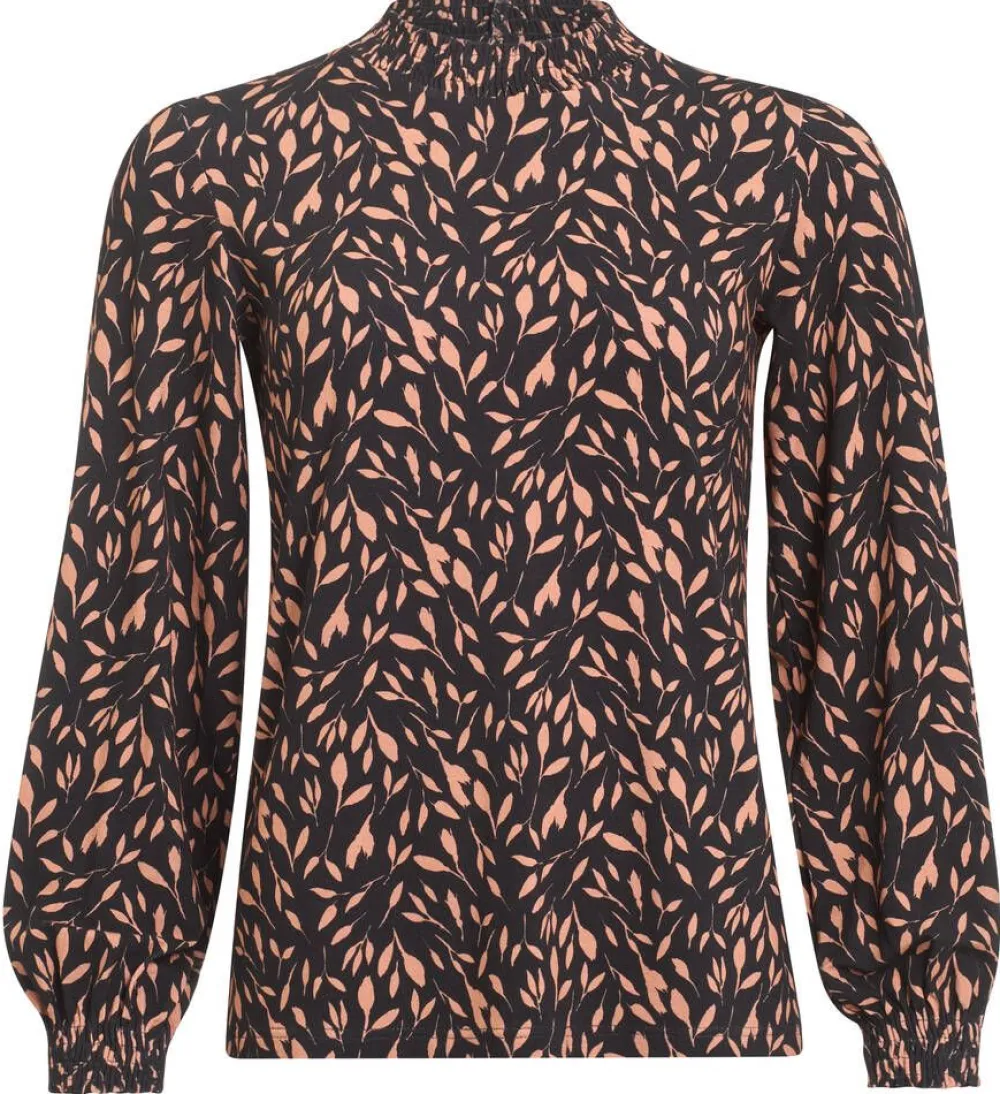 Naisellisen tyylikäs lehtikuosillinen pitkähihainen paita joustavaa viskoosia. Pääntiellä ja hihansuissa on joustav…