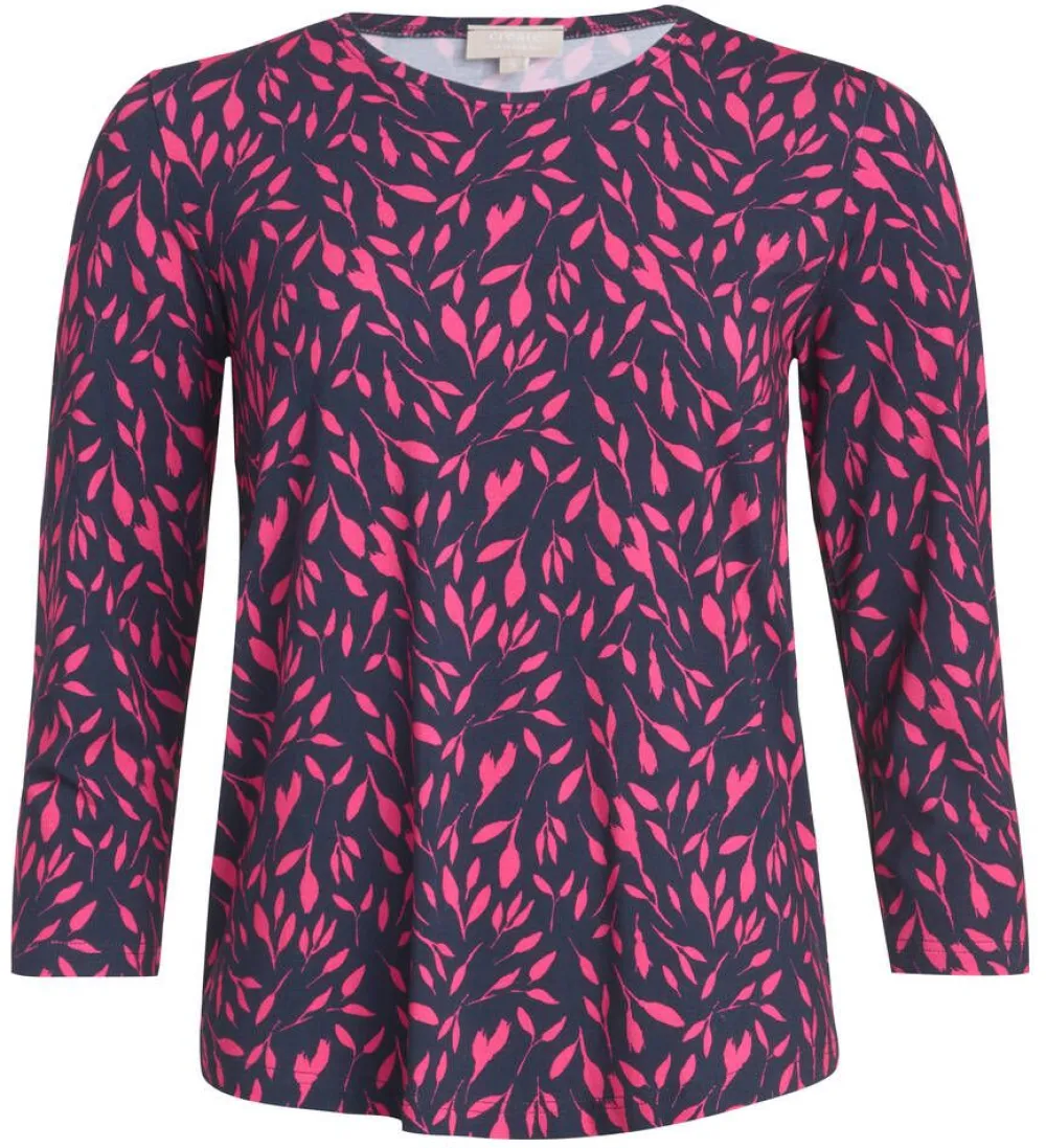 Lehtikuosinen trikoopaita 3/4 hihoilla ja pyöristetyllä helmalla.Lisää tietojaOEKO-TEX® Standard 100Rinnanympärys …